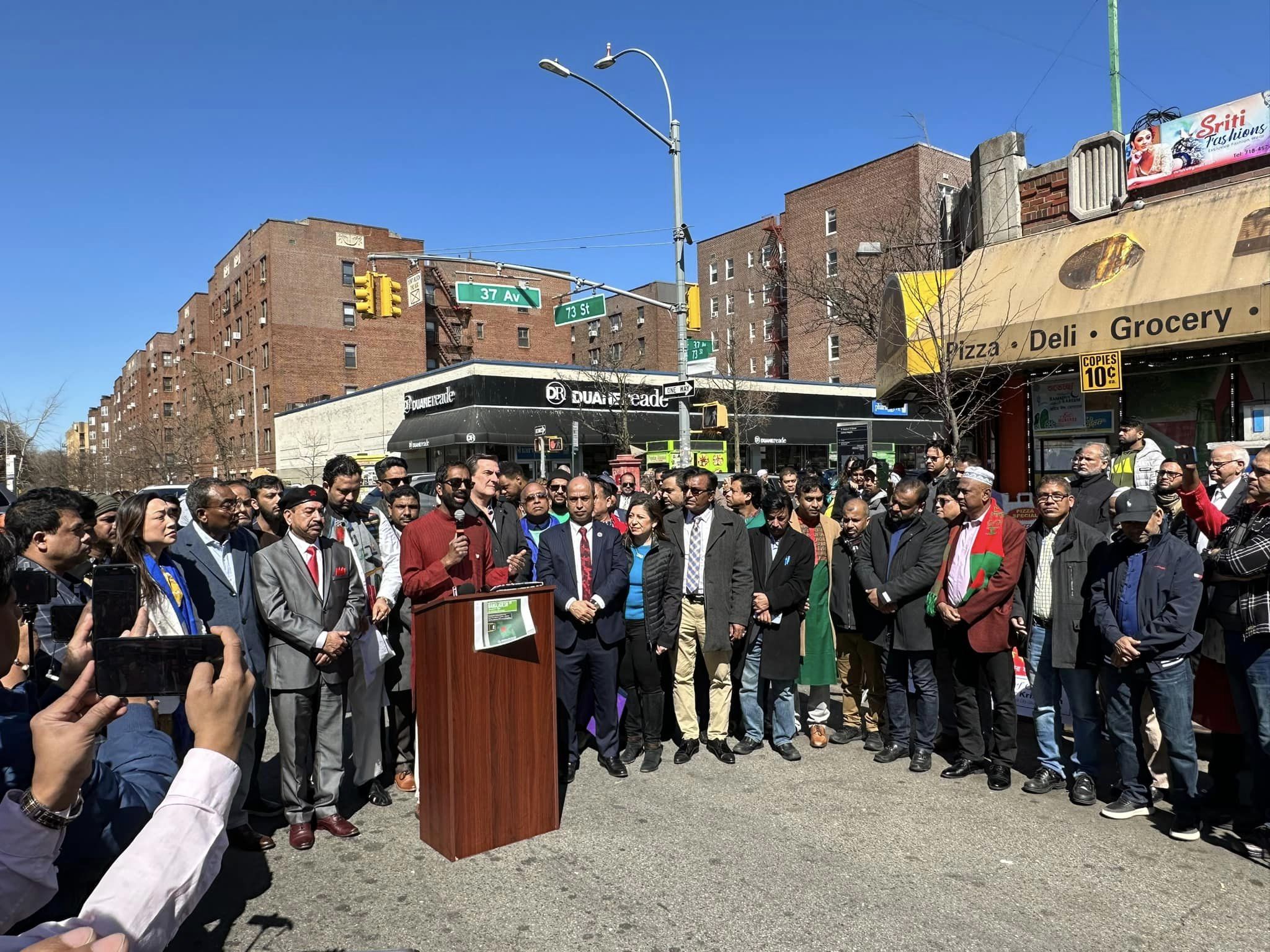 সড়কটির উদ্বোধনের আগে বক্তব্য রাখেন স্থানীয় সিটি কাউন্সিলম্যান শেখর কৃষ্ণান, কংগ্রেসওম্যান গ্রেস মেং, স্টেট অ্যাসেম্বলীওম্যান ক্যাটালিনা ক্রুজ, জেসিকা গঞ্জালেজ, মাইকেল জিনারো, সিটি কাউন্সিলওম্যান লিন্ডা লি। অনুষ্ঠানটি পরিচালনা করেন শ্রমিক নেতা বাংলাদেশি মিলন রহমান।
