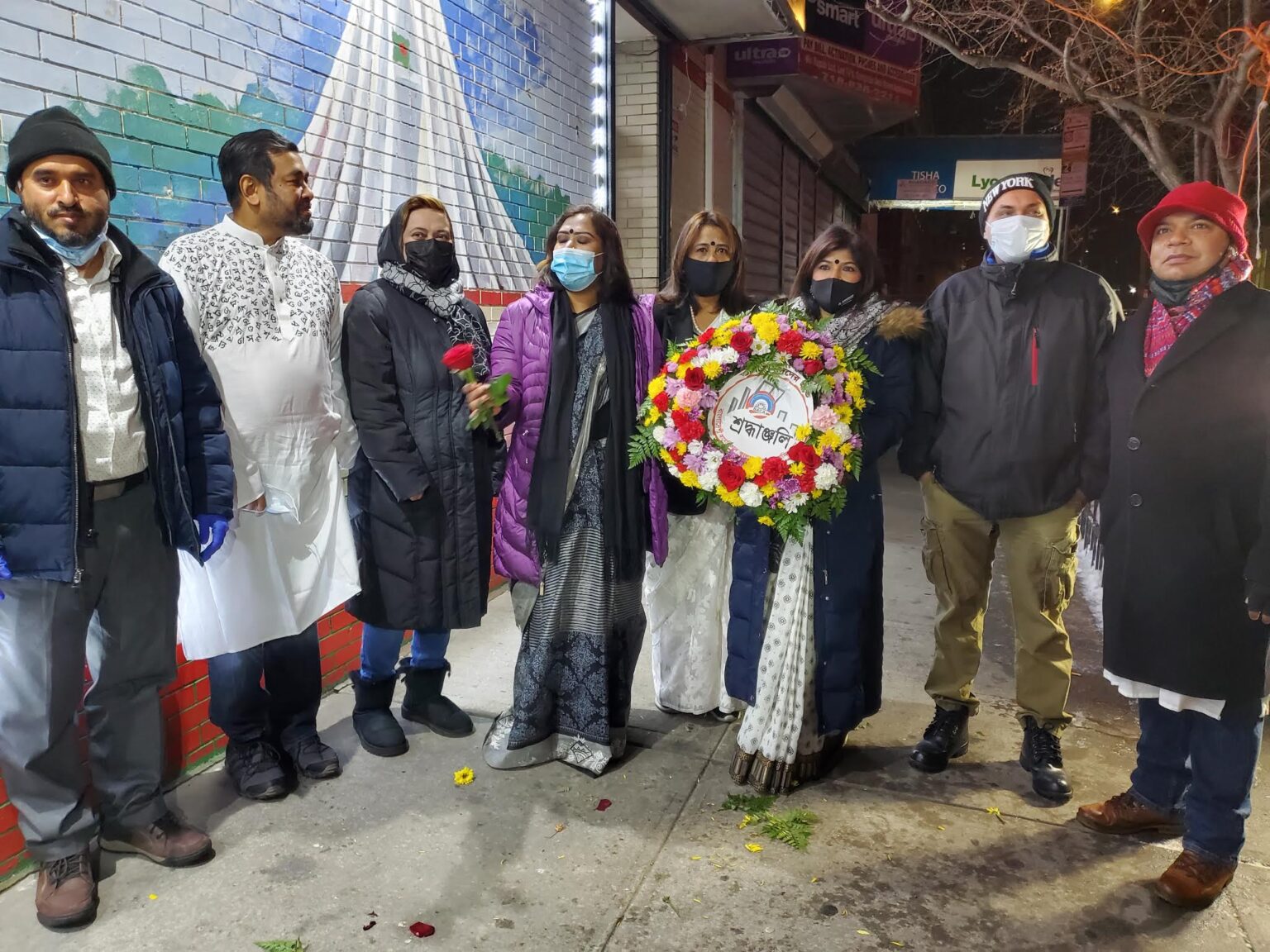 বাংলাদেশ মুরালের সামনে সামাজিক সাংস্কৃতিক সংগঠন হৃদয়ে বাংলাদেশ আয়োজিত এই অনুষ্ঠানে কনকনে শীতকে উপেক্ষা করে অংশ নেন মুক্তিযোদ্ধা, কবি, সাহিত্যিক, সাংবাদিক, ব্যবসায়ী, সংস্কৃতিকর্মী, সমাজকর্মী, রাজনীতিবিদ বহু প্রবাসী বাংলাদেশী। খবর ইউএসএনিউজঅনলাইন’র।