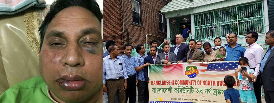সিরাজুল ইসলাম খান জানান, গতা ২১ মে ছিলো পবিত্র শবে বরাতের রাত। আমি বাসাতেই ছিলাম। বাসায় মাগরিবের নামাজ পড়ি। নামাজ শেষে আমার ছেলে আমাকে গ্যারেজ থেকে আমার গাড়িটি সরানোর জন্য বলে। আমি গাড়ি সরালে সে তার গাড়ি নিয়ে চলে যেতে পারে। আমি আমার গাড়িটি বের করে রাস্তায় বের হলে একজন কৃষ্ণাঙ্গ লোক হাত উঠালে আমি তাকে আমার ব্ল্যাক গাড়িতে উঠাই, সাথে ছিলো তার বান্ধবী। তাদের গাড়িতে উঠিয়ে আমার বাসা থেকে প্রায় আধা মাইল দূরে তাদের ঠিকানায় পৌঁছাই। তখন সে আমাকে ভাড়া কত জিজ্ঞেস করে। আমি তাকে বললাম ভাড়া ৮ ডলার। এই সময় সে তার পকেট থেকে ১০ ডলারের একটি নোট বের করে। আমি তাকে চেঞ্জ দিতে যাবো। সে দেখতে পায় আমার হাতে টাকা। তখন আমার কাছে প্রায় ২১০ ডলারের মত ছিলো। আমার হাতে টাকা দেখেই সে আমাকে অতর্কিতে পেছন থেকে ঘুষি মারে। আমি কোন কিছু বুঝার আগেই সে আমাকে একের পর এক ঘুষি মারতে থাকে মাথায়, চোখে ও মুখে। এক সময় আমার কাছ থেকে পুরো টাকা এবং আমার সেল ফোন নিয়ে যায়। আমি গাড়ি থেকে নেমে পালানোর চেষ্টা করলে আমার আগেই সে নেমে যায় এবং জাপটে ধরে আছাড় দিয়ে আমাকে মাটিতে ফেলে দেয় এবং ঘুষি ও লাথি মারতে থাকে। সেই সাথে বলতে থাকে ইউ ব্লাডি মুসলিম, আই উইল কিল ইউ। এক পর্যায়ে ২ জন মহিলা তার কোমরে ধরে তাকে একটি বিল্ডিং এ নিয়ে যায়। সে চলে যাবার পর রক্তাক্ত অবস্থায় আমি গাড়িতে ফিরে আসি এবং কোন মতে ড্রাইভ করে বাসায় যাই। বাসায় ঢুকতে ঢুকতেই আমার স্ত্রী আমার ছেলেকে কল করে। আমার ছেলে এসে পুলিশকে কল দেয়। পুলিশ এসে আমার কাছ থেকে রিপোর্ট নেয় এবং আমাকে নর্থ ব্রঙ্কস সেন্ট্রাল হাসপাতালে নিয়ে যায়। সারা রাত চিকিৎসা শেষে আমাকে ছেড়ে দেয়। পুলিশ এখনো দুর্বৃত্তকে গ্রেফতার করতে পারেনি।