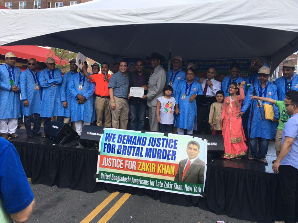 মেলায় সিনেটর রুবিন ডিয়াজ, এসেম্বলীম্যান লুুইস সিপুলভেদাসহ অন্যান্যরা জাকির খানকে বিশেষ ভাবে স্মরণ করে জাকির খান হত্যাকারীর দৃষ্টান্তমূলক শাস্তির দাবি জানান।