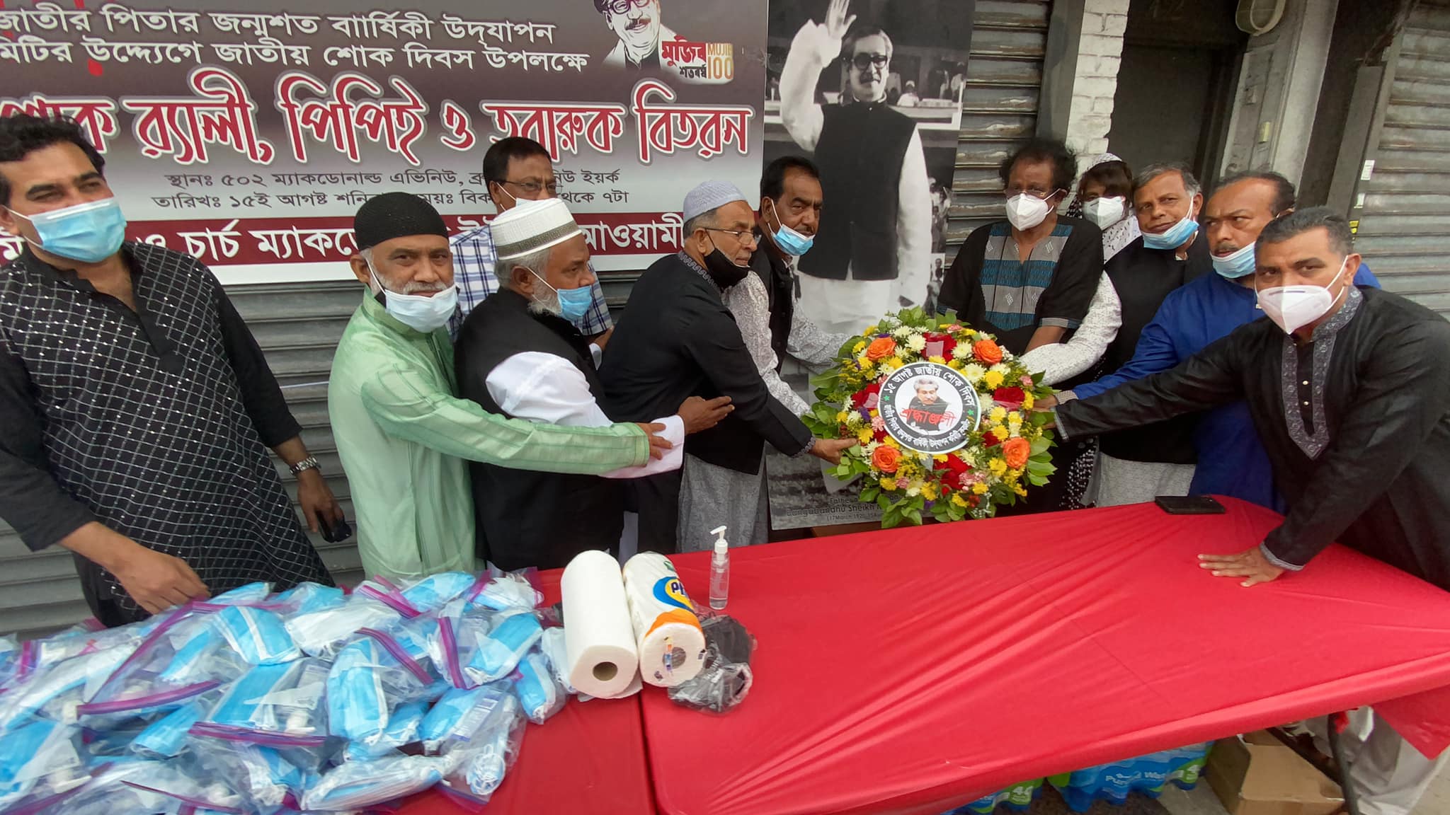 নিউইয়র্কে ব্রুকলীনের চার্চ-ম্যাকডোনাল্ডে স্থানীয় সময় ১৫ আগস্ট শনিবার সন্ধ্যায় বঙ্গবন্ধুর ৪৫ তম শাহাদৎ বার্ষিকী ও জাতীয় শোক দিবসের অনুষ্ঠানে প্রধান অতিথির বক্তব্যে এসব কথা বলেন তিনি। নিউইয়র্ক ব্রুকলীন আওয়ামী লীগ, যুবলীগ, শ্রমিক লীগ, স্বেচ্ছাসেবক লীগ ও ছাত্রলীগ সম্মিলিত উদ্যোগে যথাযোগ্য মর্যাদা ও ভাবগম্ভীর পরিবেশে জাতীয় শোক দিবস পালিত হয়। অনুষ্ঠানে মাস্ক, স্যানিটাইজার, খাদ্য সামগ্রী বিতরণ, আলোচনা ও দোয়া-মাহফিলের আয়োজন করা হয়। খবর ইউএসএনিউজঅনলাইন’র।
