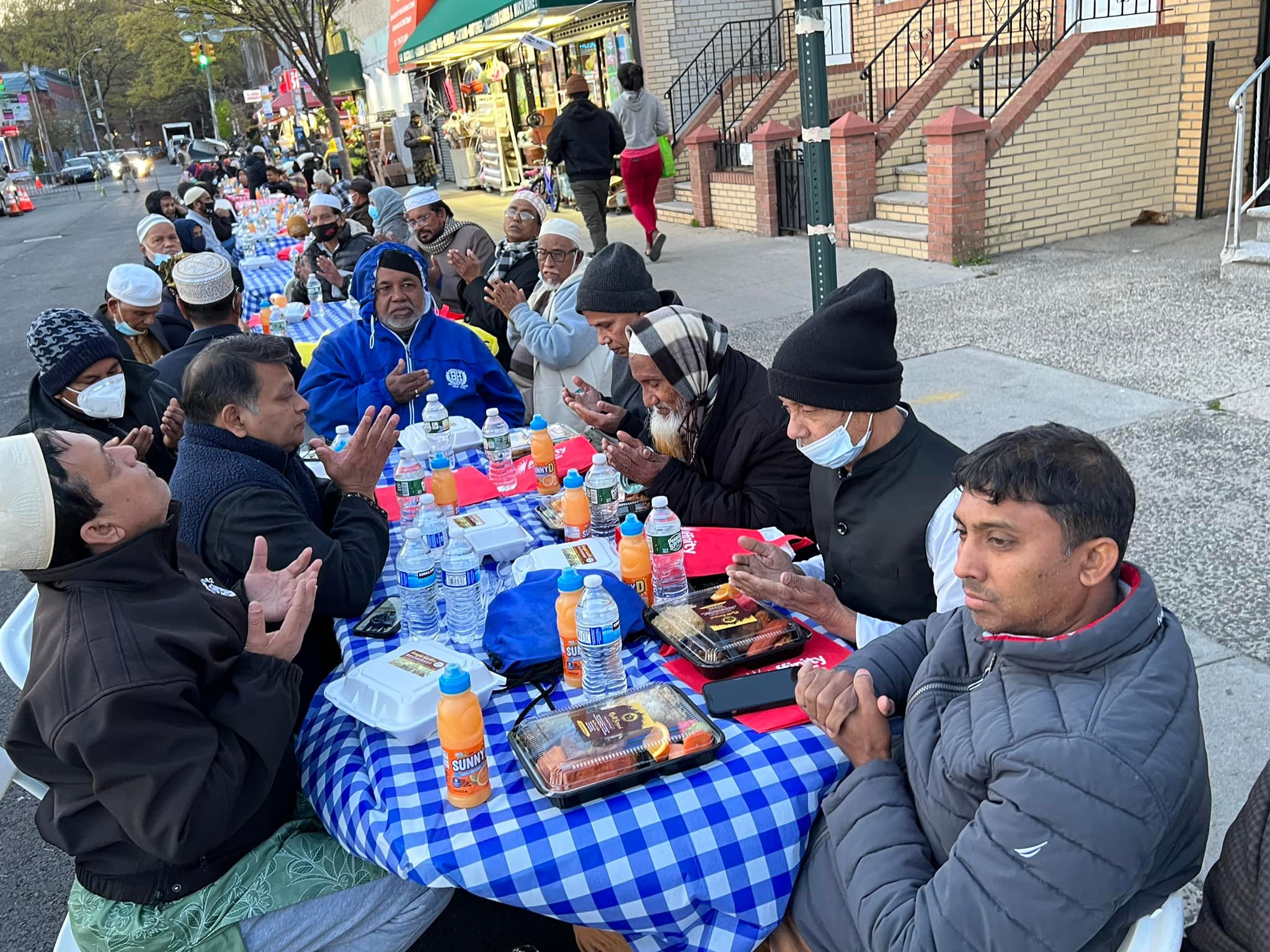 ইউএসএনিউজঅনলাইন.কম : নিউইয়র্কে খোলা আকাশের নীচে অনুষ্ঠিত হয়েছে আমেরিকান বাংলাদেশী ওয়েলফেয়ার অর্গানাইজেশানের ইন্টারফেইথ আউটডোর ইফতার। গত ২৯ এপ্রিল শুক্রবার ব্রঙ্কসের স্টারলিং-বাংলাবাজার এলাকায় খলিল পিজা হাউসের সামনে রাস্তার ওপরে এ ব্যতিক্রমী ইফতার মাহফিল অনুষ্ঠিত হয়। চমৎকার আওহাওয়ায় খোলা আকাশের নীচে বিপুল সংখ্যক রোজাদার এই ইফতারে অংশ নেন। খবর ইউএসএনিউজঅনলাইন’র।