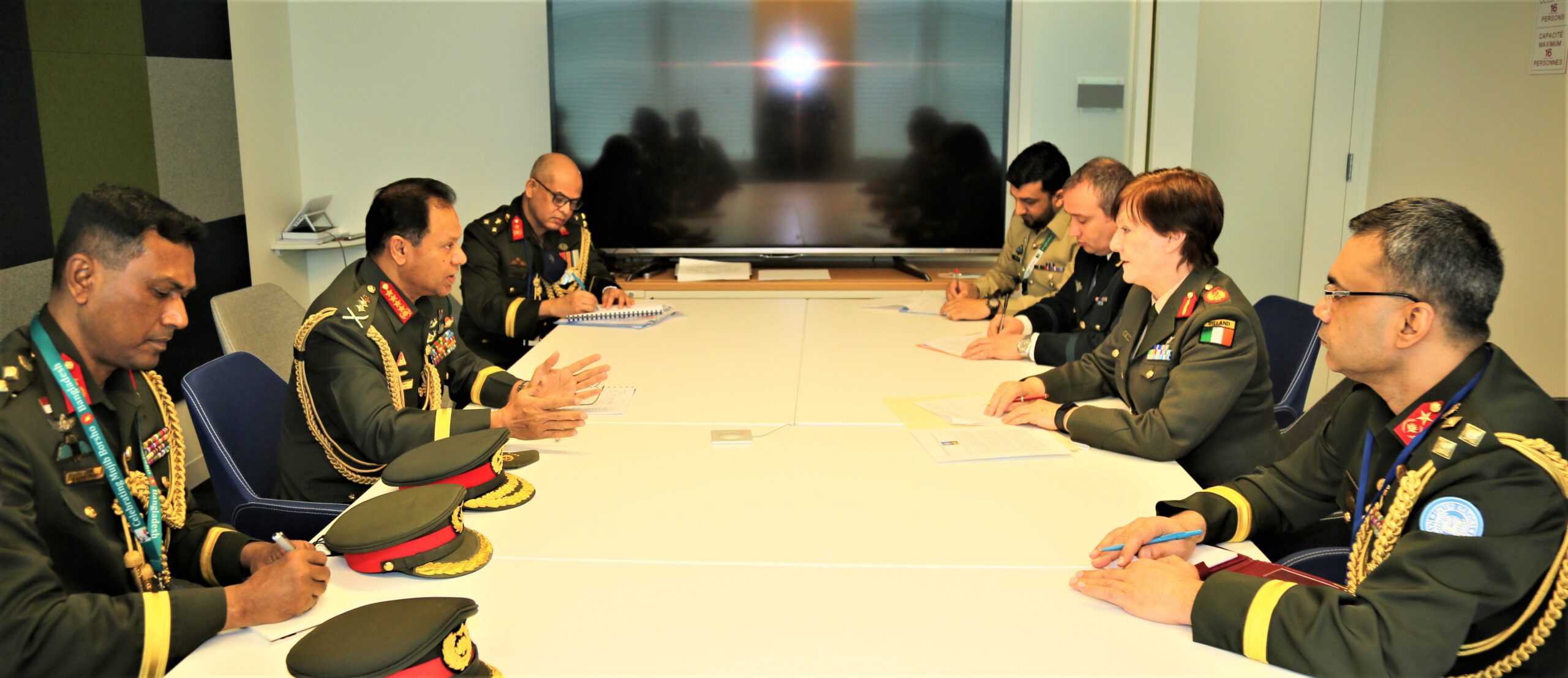 নিউইয়র্কে জাতিসংঘের উর্দ্ধতন কর্মকর্তাদের সাথে বাংলাদেশ সেনা প্রধানের বৈঠক : বাংলাদেশী শান্তিরক্ষীদের পেশাদারিত্বের উচ্চ প্রশংসা এবং বাংলাদেশ থেকে আরও শান্তিরক্ষী নিয়োগের আগ্রহ জাতিসংঘের