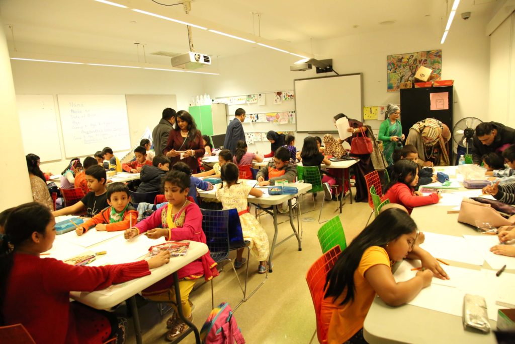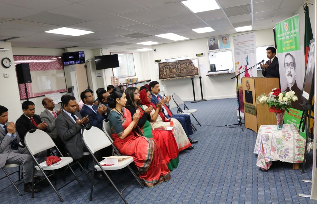 চিত্রাঙ্কন ও রচনা প্রতিযোগিতায় বয়সের ভিত্তিতে শিশুদের ‘ক’, ‘খ’ ও ‘গ’ গ্রুপে বিভক্ত করা হয়। ‘ক’ ও ‘খ’ গ্রুপের জন্য নির্ধারিত ছিল চিত্রাঙ্কণ যার বিষয় ছিল যথাক্রমে ‘বঙ্গবন্ধুর সোনার বাংলা’ ও ‘সমৃদ্ধির পথে বাংলাদেশ’। আর ‘গ’ গ্রুপের জন্য নির্ধারিত ছিল ‘বৈশ্বিক নেতৃত্বে বঙ্গবন্ধু’ বিষয়ক রচনা প্রতিযোগিতা। চিত্রাঙ্কণ ও রচনা প্রতিযোগিতায় স্থানীয় প্রবাসী বাঙালি, বাংলাদেশ মিশন ও কনস্যুলেট পরিবারের ৭৫ জন শিশু অংশগ্রহণ করে।