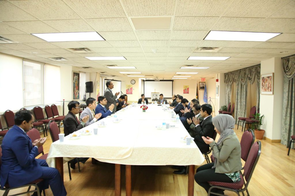 এর আগে সকালে জাতিসংঘে বাংলাদেশ স্থায়ী মিশন ও নিউইয়র্কস্থ বাংলাদেশ কনস্যুলেট জেনারেল নিজ নিজ কার্যালয়ে জাতির পিতার ৯৯তম জন্মবার্ষিকী ও জাতীয় শিশু দিবস ২০১৯ উপলক্ষ্যে রাষ্ট্রপতি, প্রধানমন্ত্রী, পররাষ্ট্রমন্ত্রী ও পররাষ্ট্র প্রতিমন্ত্রীর বাণী পাঠ,