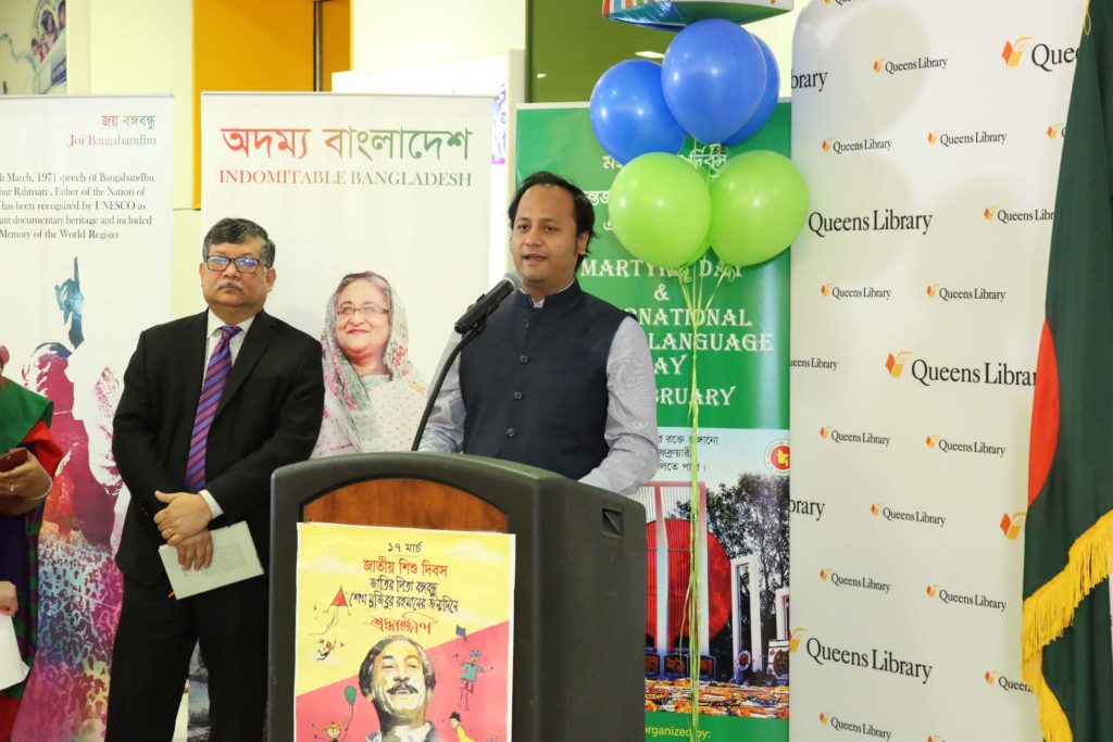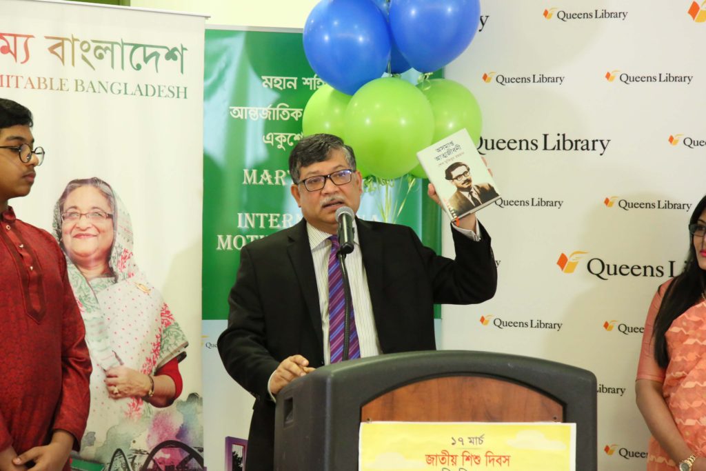 নিউইয়র্কে জাতিসংঘে বাংলাদেশ স্থায়ী মিশন, নিউইয়র্ক কনস্যুলেট ও কুইন্স সেন্ট্রাল লাইব্রেরির যৌথ উদ্যোগে বঙ্গবন্ধু ৯৯তম জন্মবার্ষিকী ও জাতীয় শিশু দিবস উদযাপন