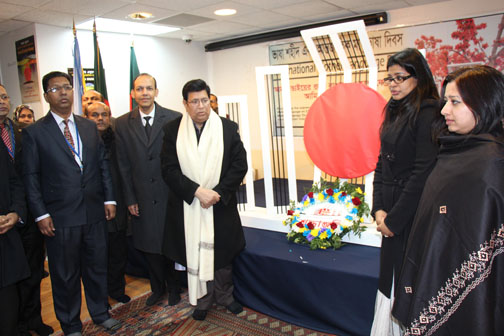 মিশনের কাউন্সেলর ও দূতালয় প্রধান রকিবুল হকের সঞ্চালনায় অনুষ্ঠানে রাষ্ট্রপতির বাণী পাঠ করে শোনান মিশনের উপস্থায়ী প্রতিনিধি সাদিয়া ফয়জুননেসা। প্রধানমন্ত্রীর বাণী পাঠ করে শোনান মিশনের প্রতিরক্ষা উপদেষ্টা ব্রিগেডিয়ার জেনারেল একেএম আখতারউজ্জামান, পররাষ্ট্রমন্ত্রীর বাণী পাঠ করে শোনান মিশনের প্রেস সচিব বিজন লাল দেব এবং পররাষ্ট্র প্রতিমন্ত্রীর বাণী পাঠ করে শোনান মিশনের কাউন্সেলর মোহাম্মদ মাহমুদুজ্জামান।
