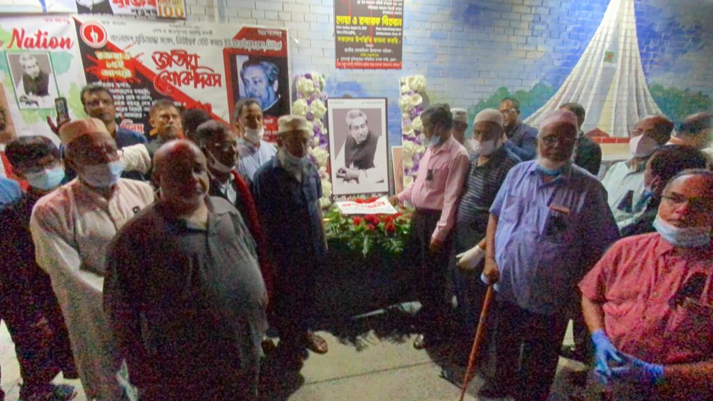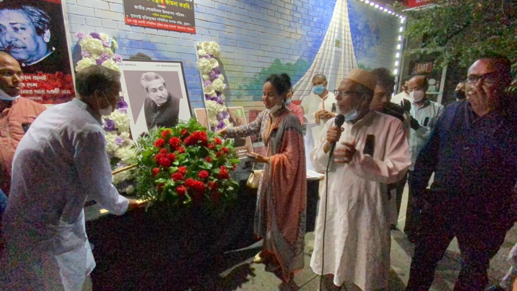 এসময় জাতির জনক বঙ্গবন্ধু শেখ মুজিবুর রহমানের প্রতিকৃতিতে শ্রদ্ধা নিবেদন করে আয়োজক সংগঠন সহ বিভিন্ন রাজনৈতিক, সামাজিক, সাংস্কৃতিক সংগঠন।