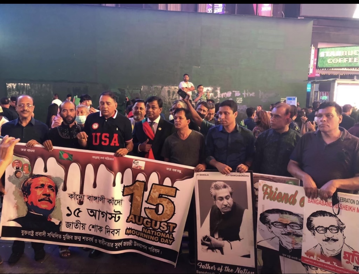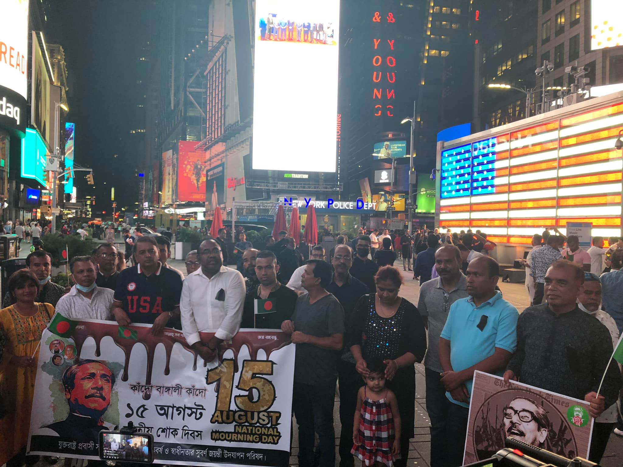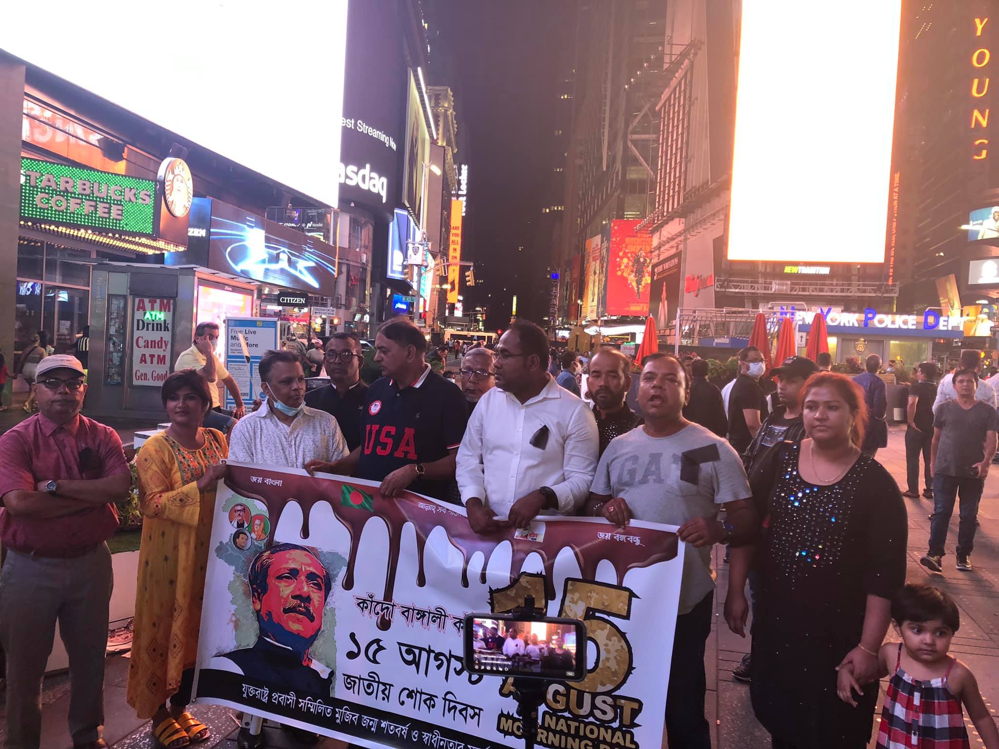 নিউইয়র্কে টাইম স্কয়ারে বাংলাদেশের জাতীয় শোক দিবস পালন যুক্তরাষ্ট্র প্রবাসী সম্মিলিত মুজিব জন্ম শতবর্ষ উদযাপন পরিষদের