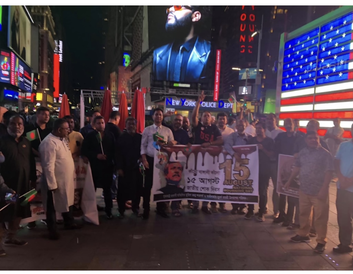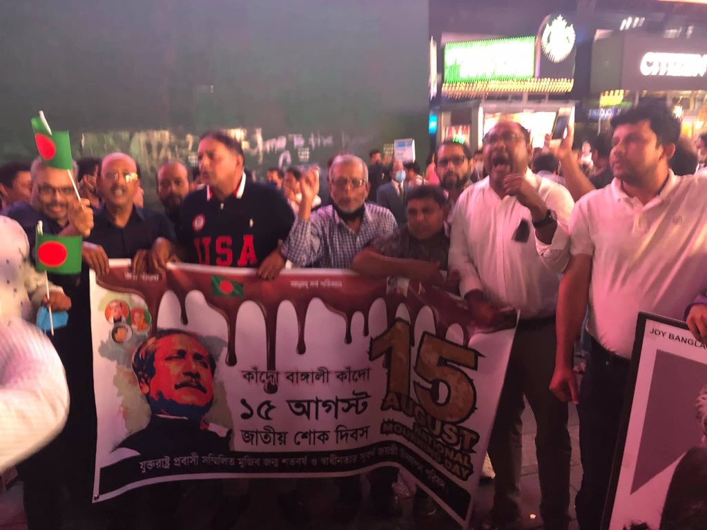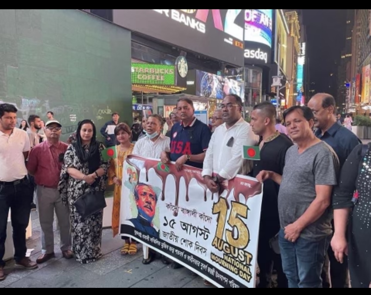 নিউইয়র্কে টাইম স্কয়ারে বাংলাদেশের জাতীয় শোক দিবস পালন যুক্তরাষ্ট্র প্রবাসী সম্মিলিত মুজিব জন্ম শতবর্ষ উদযাপন পরিষদের