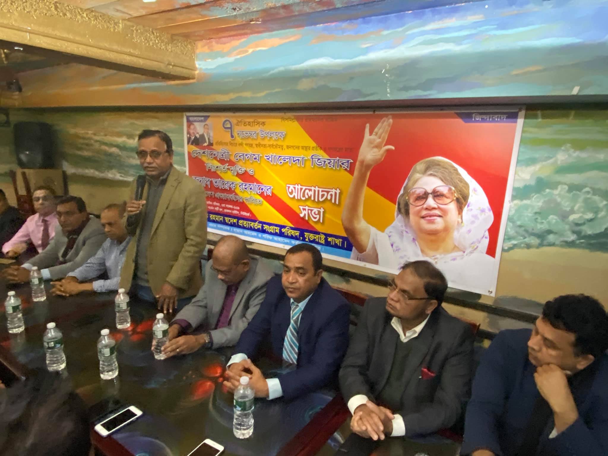 নিউইয়র্ক সিটির জ্যাকসন হাইটসে ইত্যাদি গার্ডেন পার্টি হলে স্থানীয় সময় রোববার সন্ধ্যায় ঐতিহাসিক ৭ই নভেম্বর উপলক্ষে বেগম খালেদা জিয়ার মুক্তি এবং তারেক রহমানের স্বদেশ প্রত্যাবর্তনের দাবিতে