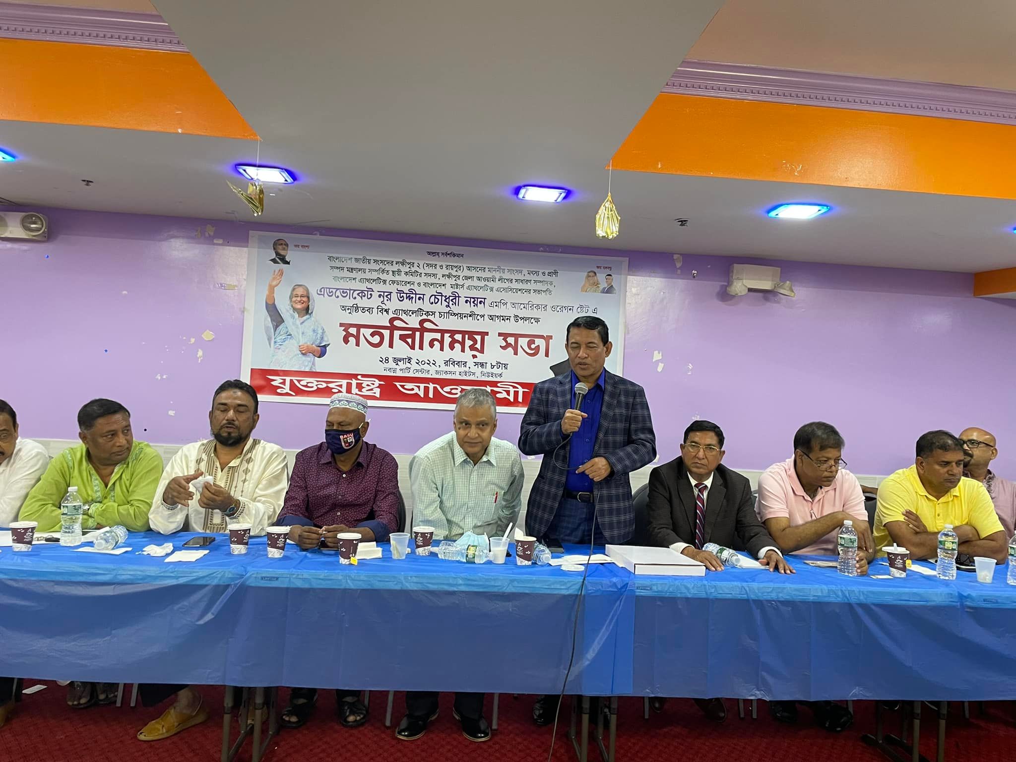 ইউএসএনিউজঅনলাইন.কম ডেস্ক, নিউইয়র্ক : যুক্তরাষ্ট্র আওয়ামী লীগের উদ্যোগে লক্ষীপুর-২ আসনের সংসদ সদস্য অ্যাডভোকেট নূর উদ্দিন চৌধুরী নয়নের সম্মানে এক মতবিনিময় সভা নিউইয়র্ক সিটির জ্যাকসন হাইটসে একটি পার্টি হলে অনুষ্ঠিত হয়েছে। ২৪ জুলাই রবিবার রাতে যুক্তরাষ্ট্র আওয়ামী লীগের ভারপ্রাপ্ত সাধারণ সম্পাদক আব্দুস সামাদ আজাদের সঞ্চালনায় ওই সভায় সভাপতিত্ব করেন সিনিয়র সহ-সভাপতি বীর মুক্তিযোদ্ধা এম ফজলুর রহমান।