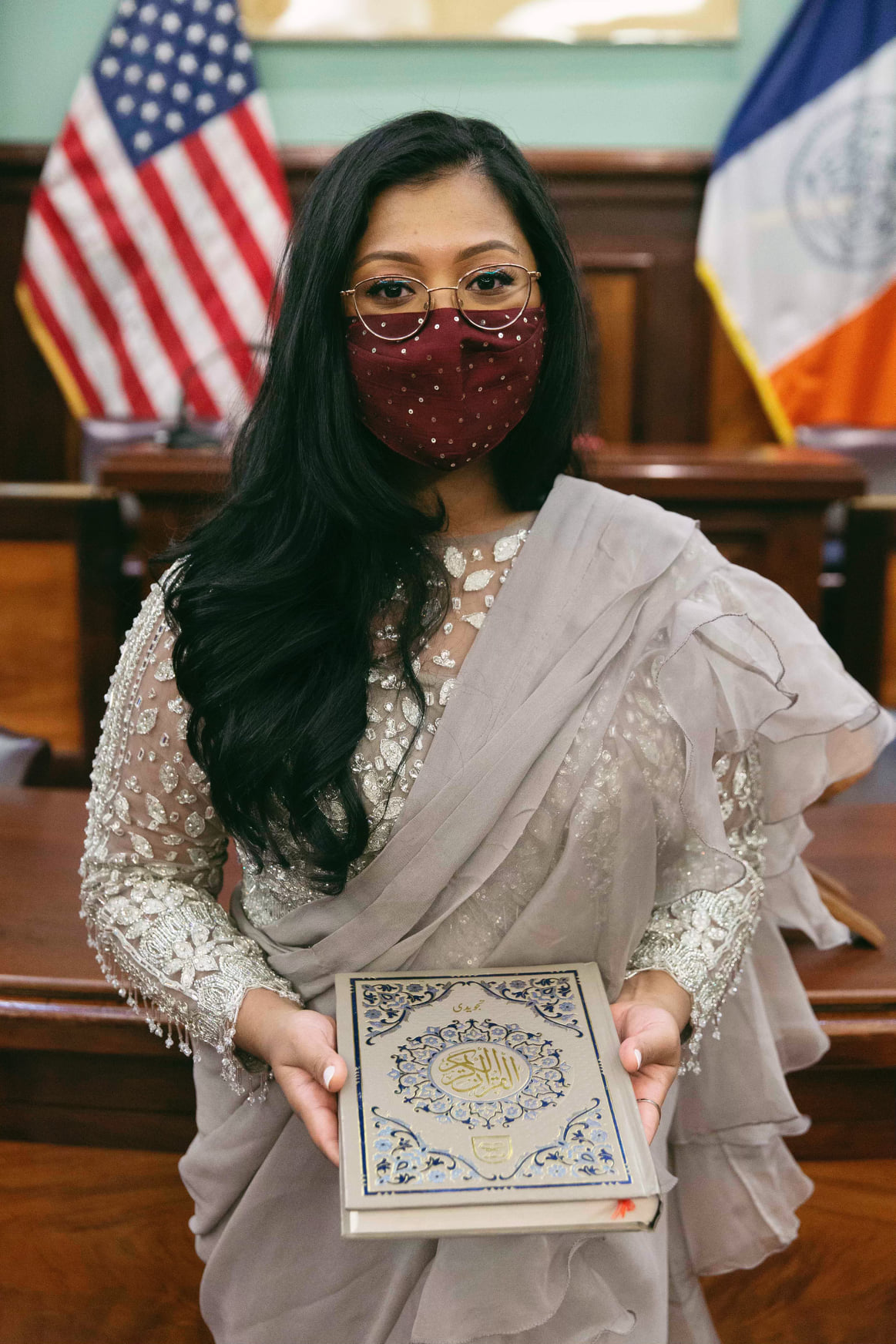 নিউইয়র্কে পবিত্র কোরআন ছুঁয়ে শপথ নিলেন কাউন্সিলওম্যান শাহানা হানিফ