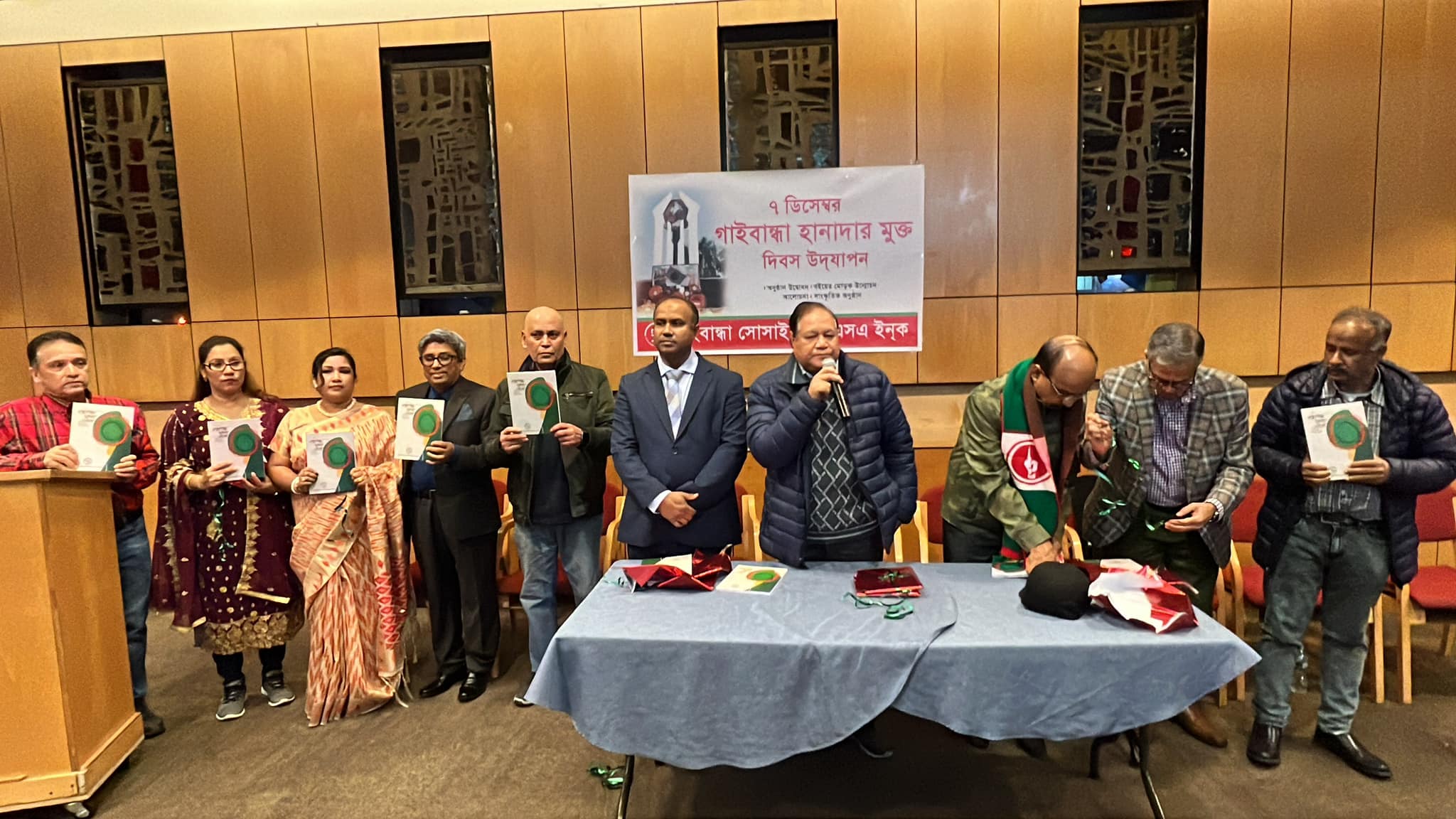 গাইবান্ধা সোসাইটির সভাপতি শাহজাহান সর্দারের সভাপতিত্বে এ অনুষ্ঠানে বক্তব্য রাখেন নতুন প্রজন্মের সুবর্ণ রহমান, যুক্তরাষ্ট্র সেক্টর কমান্ডারস ফোরামের সভাপতি বীর মুক্তিযোদ্ধা লাবলু আনসার, বাংলাদেশ লিবারেশন ওয়ার ভেটার্ন্স-ইউএসএর সভাপতি বীর মুক্তিযোদ্ধা গোলাম মোস্তফা খান মিরাজ, মুক্তিযোদ্ধা সংসদ যুক্তরাষ্ট্র ইনকের কমান্ডার আব্দুল মুকিত চৌধুরী, জাতিসংঘে বাংলাদেশের স্থায়ী প্রতিনিধির প্রতিনিধি ফার্স্ট সেক্রেটারি নূরএলাহি মিনা, বাংলাদেশ সোসাইটির ভারপ্রাপ্ত সভাপতি মহিউদ্দিন দেওয়ান, কন্সাল জেনারেলের প্রতিনিধি আসিফ আহমেদ, লেখক হোসনে আরা, সিটি মেয়রের এশিয়া বিষয়ক উপদেষ্টা ফাহাদ সোলায়মান, হোস্ট সংগঠনের সাধারণ সম্পাদক রেজা রহমান এবং ৭ ডিসেম্বর হানাদার মুক্ত দিবস উদযাপন কমিটি’র আহবায়ক আব্দুল আওয়াল দুলাল।