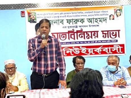 ফারুক আহমদ তাঁর বক্তব্যের শুরুতেই যুক্তরাষ্ট্র আওয়ামী লীগ এবং প্রবাসীদের সার্বিক সহযোগীতার কথা কৃতজ্ঞতার সাথে স্মরণ করেন, তাকে বিভিন্ন ভাবে সাহায্য সহযোগীতার করার জন্য সবাইকে ধন্যবাদ জ্ঞাপন করেন। তিনি তাঁর উপজেলা সহ সমস্ত বাংলাদেশে বর্তমান সরকার যেভাবে উন্নয়নের মহাযজ্ঞ চালাচ্ছেন এইভাবে চলতে থাকলে আগামী দশ বৎসরের মধ্যে বাংলাদেশ একটি উন্নত দেশ হিসাবে বিশ্ব দরবারে মাথা উচ্চু করে দাঁড়াবে বলে দৃঢ আশাবাদ ব্যক্ত করেন। ফারুক আহমদ তার বক্তব্যে আরও উল্লেখ করেন, নির্বাচনকালীন সময়ে জনগনকে দেওয়া ওয়াদাগুলি বাস্তবায়নে তিনি দৃঢ প্রতিজ্ঞ। এই প্রসঙ্গে তাঁর নেওয়া বিভিন্ন উন্নয়নমূলক পদক্ষেপের বিস্তারিত তিনি বক্তব্যে তুলে ধরেন।