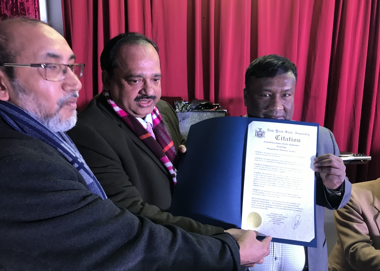 নিউইয়র্ক ষ্টেট অ্যাসেম্বলীওম্যান জেনিফার রাজকুমারের পক্ষ থেকে তার প্রতিনিধি কমিউনিটি বোর্ড মেম্বার মোহাম্মদ আলী প্রবাসী মতলব সমিতিকে বিশেষ সম্মাননা প্রদান করেন।