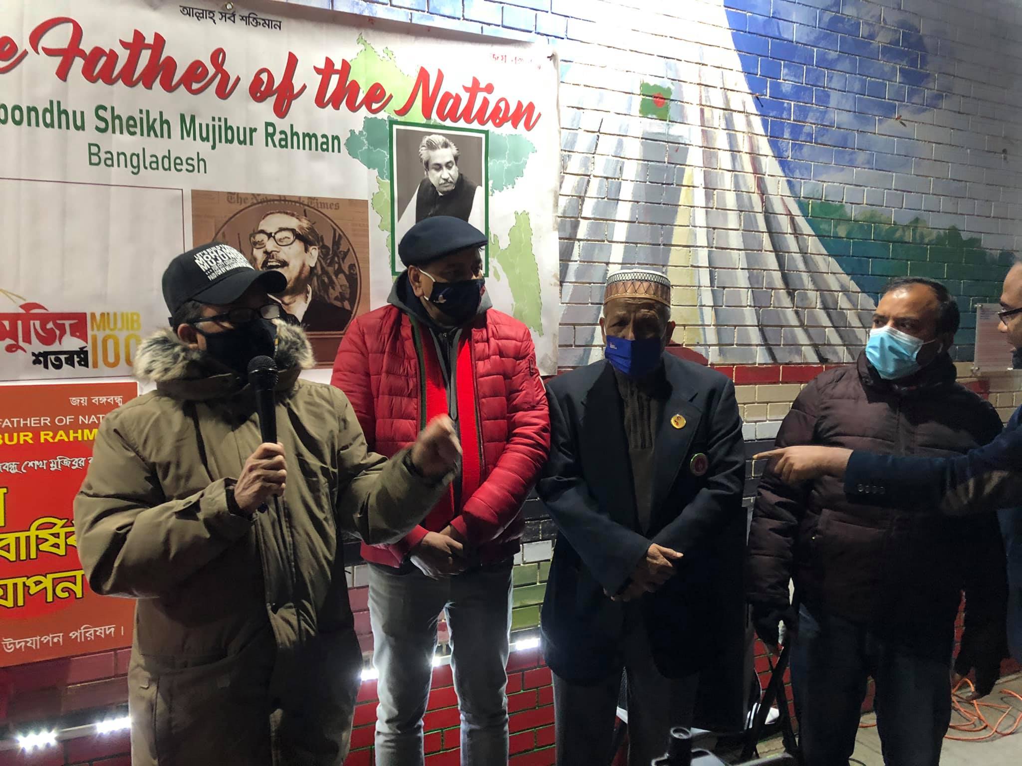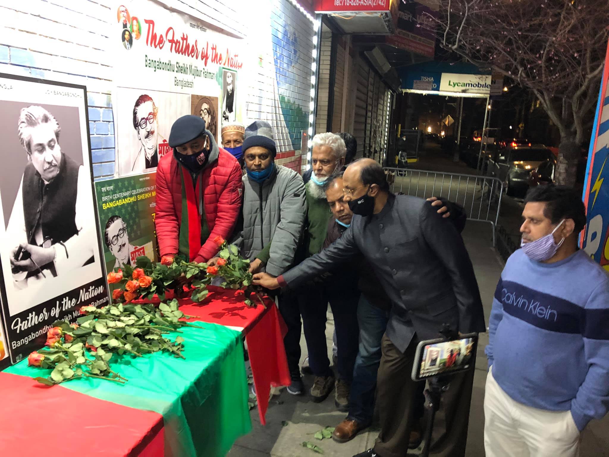 যুক্তরাষ্ট্র প্রবাসী বাংলাদেশী বঙ্গবন্ধু জন্মশতবার্ষিকী উদযাপন পরিষদের আহ্বায়ক আওয়ামীলীগ নেতা আব্দুর রহিম বাদশার সভাপতিত্বে এবং উদযাপন পরিষদের মেম্বার সেক্রেটারী জামাল হুসেন ও সাইদুর রহমান লিংকনের পরিচালনায় অনুষ্ঠানে বক্তব্য রাখেন যুক্তরাষ্ট্র আওয়ামীলীগের উপদেষ্টা মুক্তিযোদ্ধা তোফায়েল চৌধুরী, মুক্তিযোদ্ধা মঞ্জুর আহমেদ, মুক্তিযোদ্ধা মো. লিয়াকত আলী, মূলধারার রাজনীতিক মোহাম্মদ এন মজুমদার, আব্দুস শহীদ, কমিউনিটি এক্টিভিস্ট মিয়া মো. দাউদ, মো. নূর উদ্দিন মজুমদার, নুরে আলম জিকু, নূরুল ইসলাম, সালেহ আহমেদ, আবদুর রহমান, রবিউল ইসলাম, মো. নূর হোসেন প্রমুখ। কবিতা পাঠ করেন পল্লব সরকার।