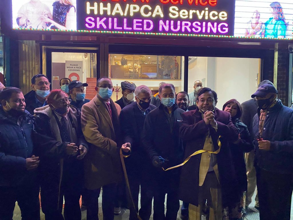 ‘গোল্ডেন এজ হোম কেয়ার’র প্রেসিডেন্ট অ্যান্ড সিইও বিশিষ্ট ব্যবসায়ী, জ্যাকসন হাইটস বাংলাদেশি বিজনেস এসোসিয়েশন-জেবিবিএ’র প্রেসিডেন্ট শাহ নেওয়াজ আমন্ত্রিত অতিথিদের সাথে নিয়ে ফিতা কেটে ‘গোল্ডেন এজ হোম কেয়ার’র প্রধান কার্যালয়ের আনুষ্ঠানিক উদ্বোধন করেন।
