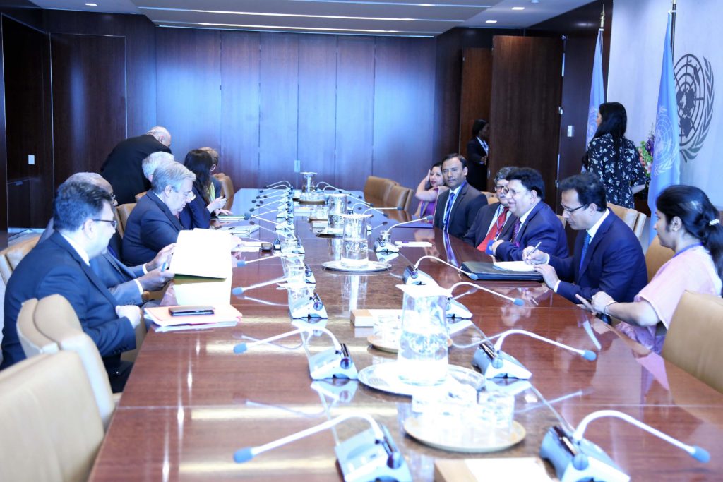 পররাষ্ট্রমন্ত্রী রোহিঙ্গা ইস্যুটির টেকসই সমাধানে জাতিসংঘ ও আন্তর্জাতিক সম্প্রদায়ের আরও জোরালো সহায়তা চাইলে জাতিসংঘ মহাসচিব বলেন, এই সঙ্কটের সমাধানে তিনি সর্বোচ্চ প্রচেষ্টা চালিয়ে যাচ্ছেন। এ বিষয়ে জাতিসংঘসহ আন্তর্জাতিক সম্প্রদায়ের করণীয় সম্বন্ধে সুনির্দিষ্ট বেশকিছু বিষয়ে ফলপ্রসূ আলোচনা হয় এ বৈঠকে। মহাসচিব আন্তোনিও গুতেরেজ রোহিঙ্গা ইস্যুতে প্রধানমন্ত্রী শেখ হাসিনা ও বাংলাদেশের জনগণের উদারতা ও মানবিক সহযোগিতার জন্য কৃতজ্ঞতা প্রকাশ করেন ও ধন্যবাদ জানান।