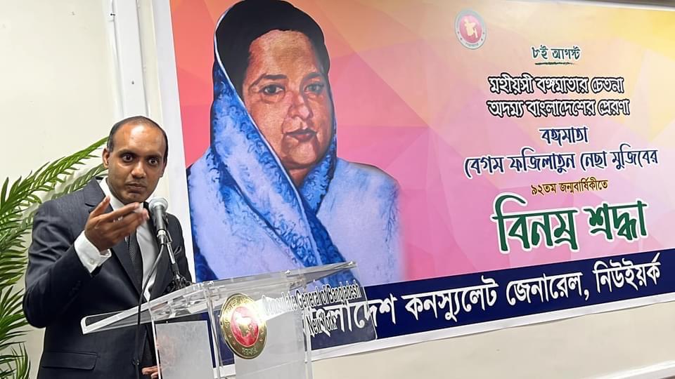 নিউইয়র্কে বাংলাদেশ কনস্যুলেট জেনারেলে বঙ্গমাতা বেগম ফজিলাতুন নেছা মুজিব এর ৯২তম জন্মবার্ষিকী উদযাপন :বঙ্গমাতার জন্ম না হলে হয়ত স্বাধীনতার ইতিহাস ভিন্ন হতে পারত -স্পীকার ড. শিরীন শারমিন চৌধুরী (ভিডিও সহ)
