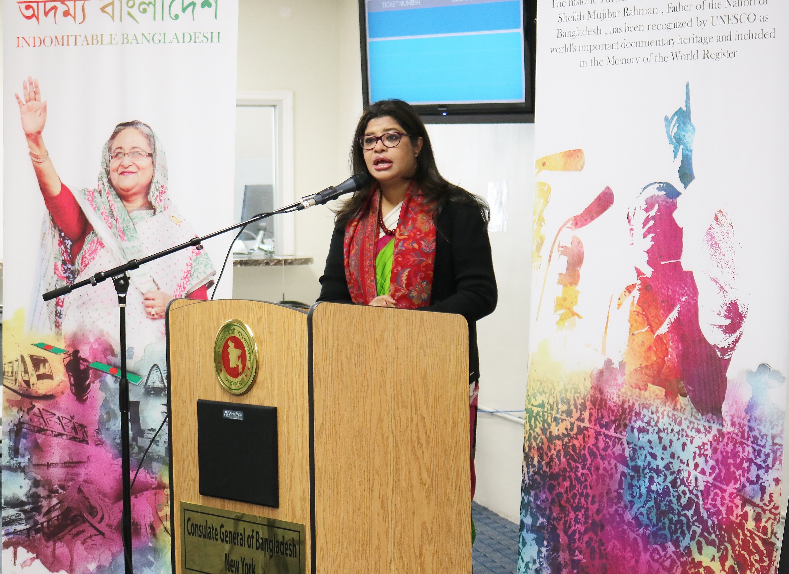 অনুষ্ঠানের শুরুতে ৭ই মার্চের ভাষণটি প্রদর্শন করা হয় যা অনুষ্ঠানের পরও প্রচারিত হয়েছে এবং কনস্যুলার সেবা গ্রহণের জন্য আগত বাংলাদেশী-আমেরিকান ও আমেরিকানগণ গভীর আগ্রহের সাথে তা অবলোকন করেন।