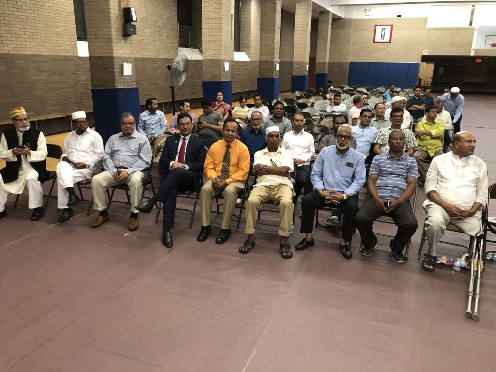 আয়োজক কমিটির আহ্বায়ক ও আমেরিকান-বাংলাদেশী ওয়েলফেয়ার অর্গানাইজেশন ইনকের প্রেসিডেন্ট আবদুস শহীদের সভাপতিত্বে এবং আয়োজক কমিটির প্রধান সমন্বয়কারী জামাল হুসেন ও যুগ্ম সদস্য সচিব শাহিন কামালীর যৌথ পরিচালনায় অনুষ্ঠানে অন্যদের মধ্যে বক্তব্য রাখেন, নিউইয়র্ক স্টেট সিনেটর লুইস সিপুলভেদা, নিউইয়র্ক বাংলাদেশের কনসাল জেনারেল সাদিয়া ফয়জুন্নেছা, জালালাবাদ এসোসিয়েশন অব আমেরিকা’র সভাপতি বদরুল হোসেন খান, কুইন্স ডেমোক্রেটিক পার্টির ডিস্ট্রিক্ট লিডার এট লার্জ এটর্নি মঈন চৌধুরী, যুক্তরাষ্ট্র আওয়ামী লীগের উপদেষ্টা ড. প্রদীপ রঞ্জণ কর, সাবেক সাধারণ সম্পাদক এমএ সালাম, সহ-সভাপতি সৈয়দ বসারত আলী, সাংগঠনিক সম্পাদক ফারুক আহমেদ (উপজেলা চেয়ারম্যান), আব্দুর রহিম বাদশা ও মানবাধিকার বিষয়ক সম্পাদক মিসবাহ আহমেদ, অয়েল কেয়ার হেলথ প্ল্যানের সিনিয়ার ম্যানেজার সালেহ আহমেদ, স্টারলিং-বাংলাবাজার বিজনেস এসোসিয়েশন এবং বাংলাবাজার জামে মসজিদের প্রতিষ্ঠাতা সভাপতি বিশিষ্ট ব্যবসায়ী আলহাজ গিয়াস উদ্দিন, বাংলাদেশী-আমেরিকান কমিউনিটি কাউন্সিলের সভাপতি মোহাম্মদ এন মজুমদার, আমেরিকান-বাংলাদেশী ওয়েলফেয়ার অর্গানাইজেশন ইনকের সহ সভাপতি রফিকুল ইসলাম ও এডভোকেট নাসির উদ্দিন, আয়োজক কমিটির উপদেষ্টা ছদরুন নূর, ইকবাল আহমেদ মাহবুব, আবদুল মুহিত ও জুসেফ চৌধুরী, যুগ্ম আহ্বায়ক একে এম রহমান কামাল ও মির্জা রশিদ মামুন, সদস্য সচিব জামাল আহমেদ, সদস্য আমিনুল হক চুন্নু, বাংলাদেশ সোসাইটির সাবেক সাধারণ সম্পাদক সিরাজ উদ্দিন আহমেদ সোহাগ, কমিউনিটি এক্টিভিস্ট হাসান আলী, এক্লিমুজ্জামান নুনুই, নূরে আলম জিকু, এডভোকেট আলাউদ্দিন সহ কমিউনিটির নের্তৃবৃন্দ। পবিত্র কুরআন থেকে তেলাওয়াত করেন বাংলাবাজার জামে মসজিদের খতিব মাওলানা আবুল কাশেম এয়াহইয়া।