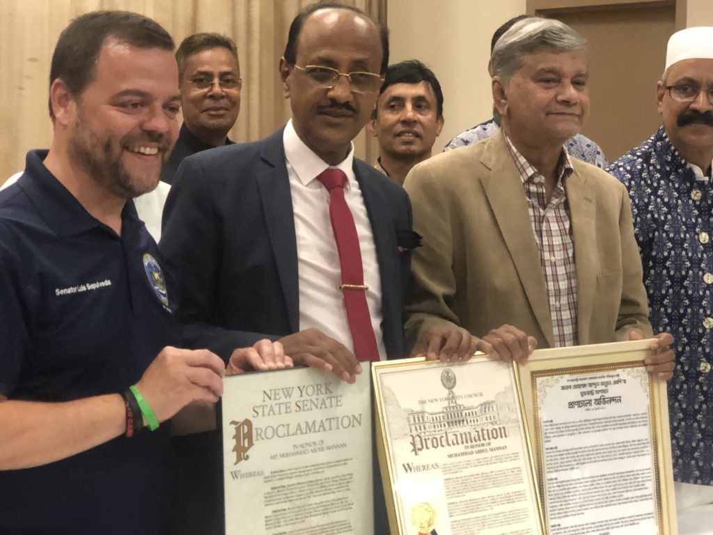 নিউইয়র্কে বাংলাদেশ সরকারের পরিকল্পনা মন্ত্রী এমএ মান্নানের বর্ণাঢ্য সংবর্ধনা