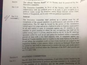 এদিকে, কোষাধ্যক্ষ মোহাম্মদ আলী ইউএসএনিউজঅনলাইন.কমকে জানান, ট্রাষ্টি বোর্ড সদস্য আলী ইমাম শিকদারকে অব্যাহতি প্রদানের এবং অপর ট্রাষ্টি বোর্ড সদস্য কাজী আজহারুল হক মিলনকে কারণ দর্শানো নোটিশ প্রদানের গৃহীত সিদ্ধান্তটিই ছিল সোসাইটির গঠনতন্ত্র পরিপন্থী। তিনি বলেন, ট্রাষ্টি বোর্ড সদস্যদের বিরুদ্ধে কোন ব্যবস্থা নেয়ার ক্ষমতাই নেই কার্যকরী কমিটির। এজন্য কার্যকরী কমিটির সভায় আমরা তার তীব্র প্রতিবাদ করেছি। কিন্তু তারা মেজরিটির জোরে ১২ জন সদস্য অগঠনতান্ত্রিক এ সিদ্ধান্ত নিয়েছে।