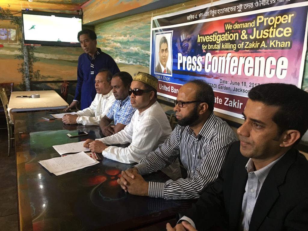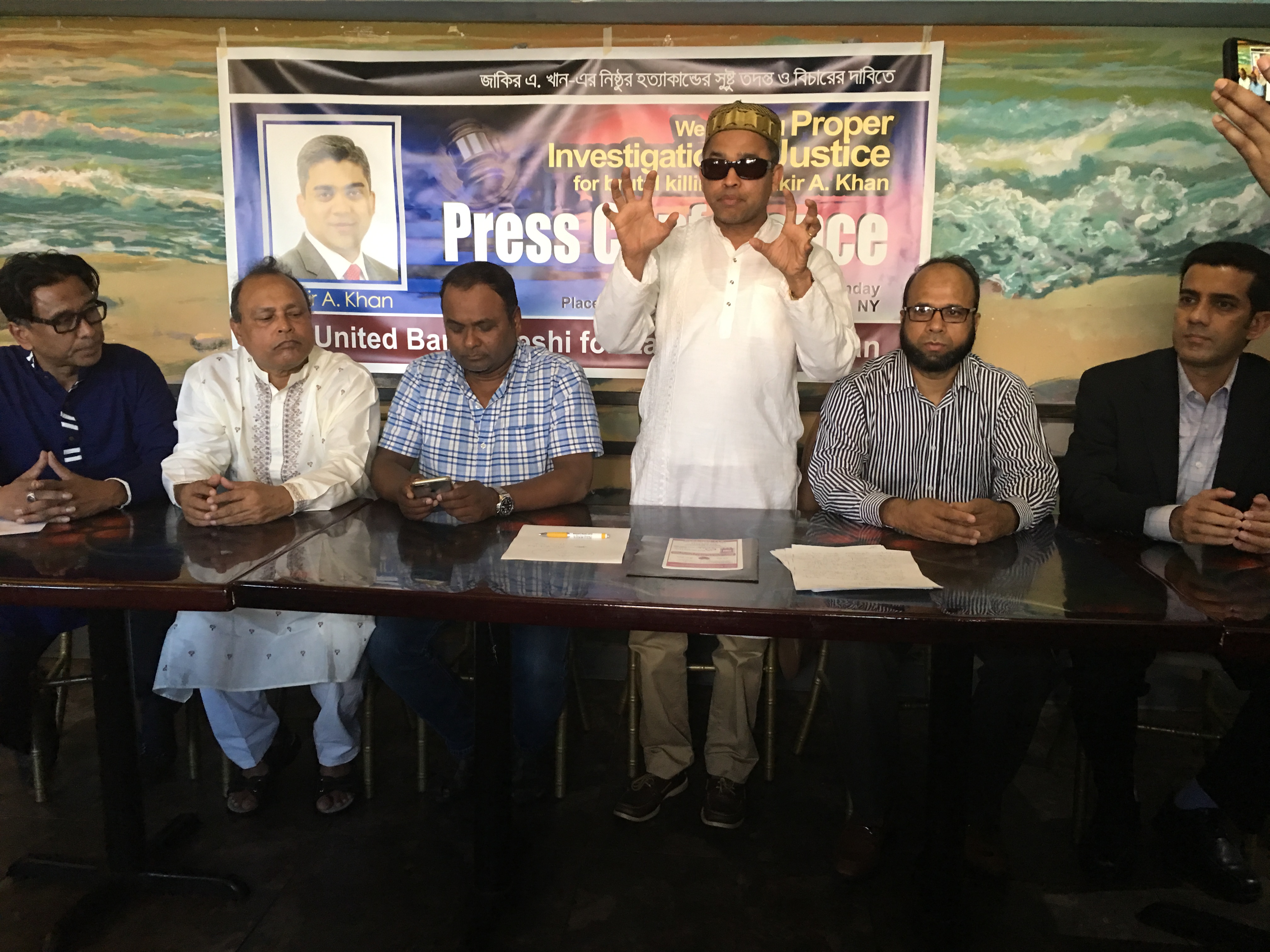 ‘ইউনাইটেড বাংলাদেশী ফর জাকির এ খান’র সদস্য সচিব ও জালালাবাদ এসোসিয়েশনের সাধারণ সম্পাদক জেড চৌধুরী জুয়েলের পরিচালনায় সংবাদ সম্মেরনে অন্যদের মধ্যে বক্তব্য রাখেন, হোস্ট সংগঠনের প্রধান সমন্বয়কারী ও মুখপাত্র বিশিষ্ট আইনজীবী মোহাম্মদ এন মজুমদার, বাংলাদেশ সোসাইটির সিনিয়র সহ-সভাপতি ও হোস্ট সংগঠনের যুগ্ম আহবায়ক আব্দুর রহিম হাওলাদার, বাংলাদেশ সোসাইটি’র সাধারণ সম্পাদক রুহুল আমিন সিদ্দিকী, সাবেক সহ সাধারণ সম্পাদক সিরাজ উদ্দিন সোহাগ এবং নিহত জাকির খানের বড়ভাই নাদির খান।