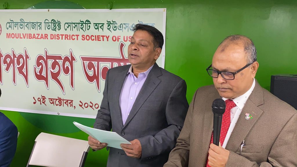 উল্লেখ্য, মৌলভীবাজার ডিস্ট্রিক্ট সোসাইটি অব ইউএসএ’র নতুন কমিটি গঠিত হয় গত ৪ঠা অক্টোবর ২০২০। এস্টোরিয়ার বৈশাখী রেস্টুরেন্ট প্রাঙ্গণে মনোনয়ন দাখিলের শেষ দিন ৪ঠা অক্টোবর প্রতিটি পদে একজন করে প্রার্থী থাকায় সোসাইটির নির্বাচন কমিশন সবাইকে বিনা প্রতিদ্বন্দ্বিতায় নির্বাচিত ঘোষণা করেন। নয়া কমিটিতে ১৯ সদস্য বিশিষ্ট কমিটির নতুন সভাপতি তজুমল হোসেন ও সাধারণ সম্পাদক মোহাম্মদ জাবেদ উদ্দিন নির্বাচিত হন।