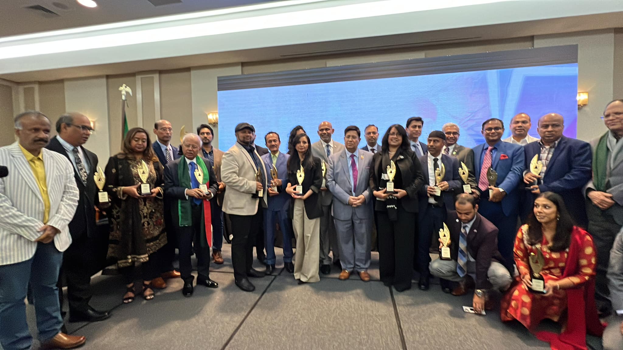 সন্ধ্যার পর থেকে কুইন্সে লাগোয়ার্ডিয়া প্লাজা হোটেলে জড়ো হতে থাকেন যুক্তরাষ্ট্রের মূলধারার গুরুত্বপূর্ণ বাঙালি রাজনৈতিক এবং আমন্ত্রিত অতিথিগণ। যুক্তরাষ্ট্রের গুরুত্বপূর্ণ পদে প্রতিনিধিত্বকারী বিভিন্ন শ্রেণি পেশার প্রবাসী বাংলাদেশিদের মিলনমেলায় পরিণত হয় হোটেলে বলরুম। ডেমোক্র্যাটিক এবং রিপাবলিকান দুই দলের বাংলাদেশি রাজনৈতিকরা আসেন এ অনুষ্ঠানে। অনুষ্ঠানের শুরুতে পরিবেশন করা হয় বাংলাদেশ ও যুক্তরাষ্ট্রের জাতীয় সঙ্গীত। তার একে একে বাংলাদেশি বংশোদ্ভূত যুক্তরাষ্ট্রের মূলধারার রাজনৈতিকদের হাতে ক্রেস্ট তুলে দেওয়া হয়।
