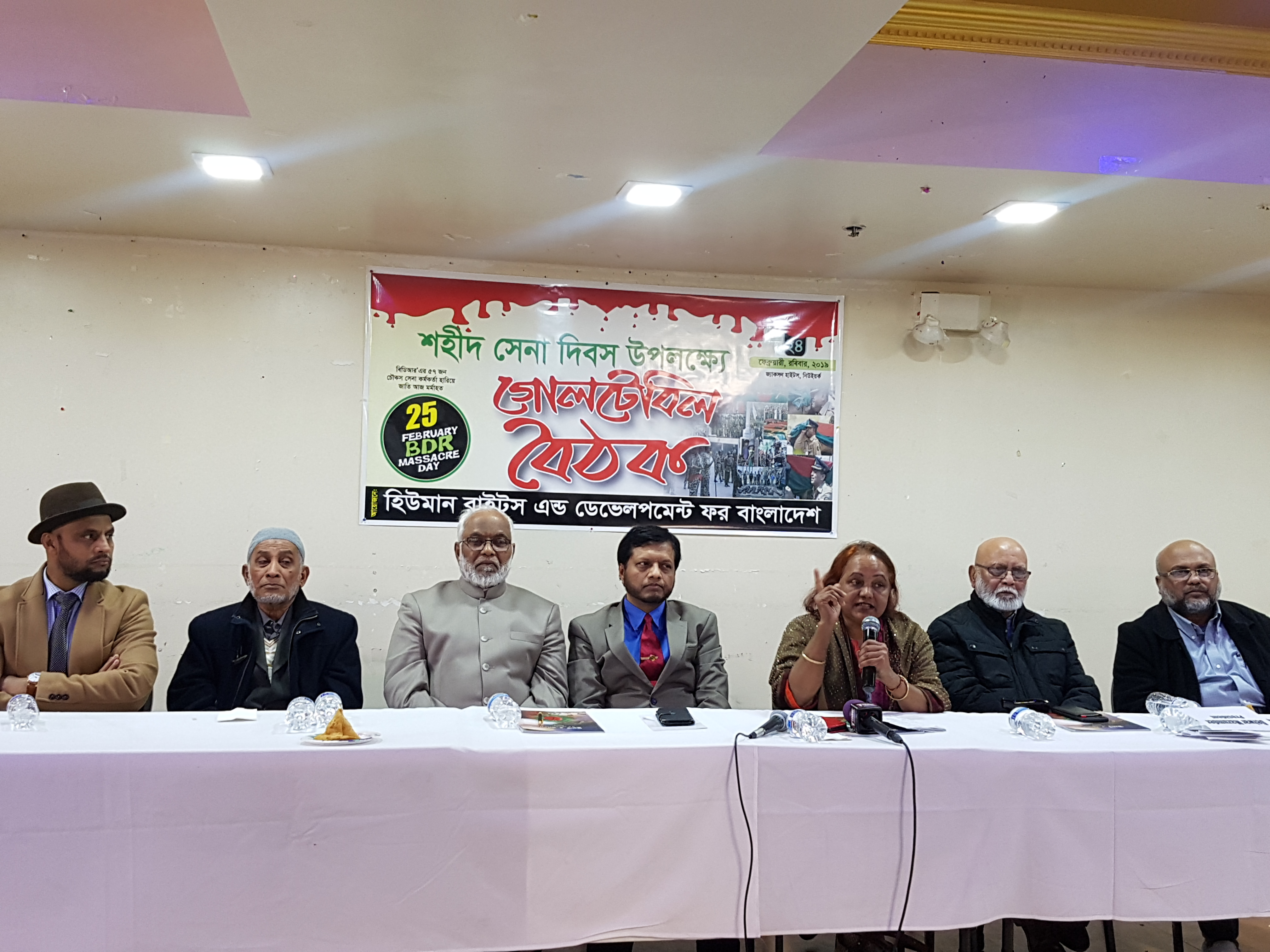 সভায় সভাপতিত্ব করেন এইচআরডিবি’র সেক্রেটারী প্রফেসর দেলোয়ার মজুমদার। বক্তব্য রাখেন, লেফটেন্যান্ট কর্নেল (অব:) খাজা মোস্তাফিজুর রহমান, সিনিয়র সাংবাদিক কাজী শাসছুল হক, মুক্তিযোদ্ধা প্রফেসর নূরুল ইসলাম, বাংলাদেশী আমেরিকান প্রফেসিভ ফোরামের সাধারণ সম্পাদক মাহবুবুর রহমান, কমিউনিটি এক্টিভিস্ট প্রফেসর কাজী ইসমাঈল ও এডভোকেট আবুল হাসেম। অনুষ্ঠান পরিচালনা করেন প্রফেসর জাহিদ বিন জমির।এছাড়াও গোলটেবিল বৈঠকে নিউইয়র্কের বিভিন্ন শ্রেণী পেশা ও সামাজিক সংগঠনের শতাধিক নেতৃবৃন্দ উপস্থিত ছিলেন। অনুষ্ঠান শেষে শহীদদের রুহের মাগফেরাত কামনা করে দোয়া করা হয়।
