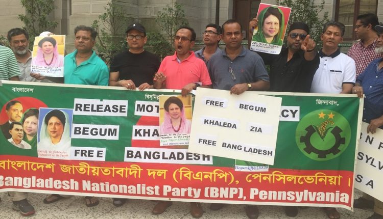 জাতিসংঘে শেখ হাসিনার ভাষণের সময় বাইরে বড় ধরনের শো-ডাউন করা হবে। সেখানে খালেদা জিয়ার মুক্তি দাবিতে প্রচারপত্র বিলি করাও হবে বলে নেতৃবৃন্দ উল্লেখ করেন। শুধু তাই নয়, ২৮ সেপ্টেম্বর যদি শেখ হাসিনাকে নাগরিক সংবর্ধনা দেয়া হয়, তাহলে ঐ হোটেলের বাইরেও মানববন্ধন করা হবে। ইতিমধ্যেই বিভিন্ন গ্রুপের পক্ষ থেকে এসব কর্মসূচির সমর্থনে প্রস্তুতি চলছে। গত সপ্তাহে জ্যামাইকায় আকতার হোসেন বাদলের নেতৃত্বাধীন এবং জ্যাকসন হাইটসে মাহফুজুল মাওলা নান্নু ও এম এ বাতিনের নেতৃত্বাধীন বিএনপির উদ্যোগে পৃথক দুটি সভা থেকেও উপরোক্ত কর্মসূচিতে সকল প্রবাসীর অংশগ্রহণ কামনা করা হয়েছে। বিএনপি নেতা অধ্যাপক দেলোয়ার হোসেন এবং মোস্তফা কামাল পাশা বাবুল বলেছেন, ‘বেগম জিয়াকে কারাগারে রেখে ক্ষমতাসীনরা বাংলাদেশে বাকশাল কায়েম করতে চাচ্ছে। কিন্তু শহীদ জিয়ার আদর্শে উদ্বুদ্ধ একজন কর্মী বেঁচে থাকতেও সেটি ঘটতে দেয়া হবে না।’