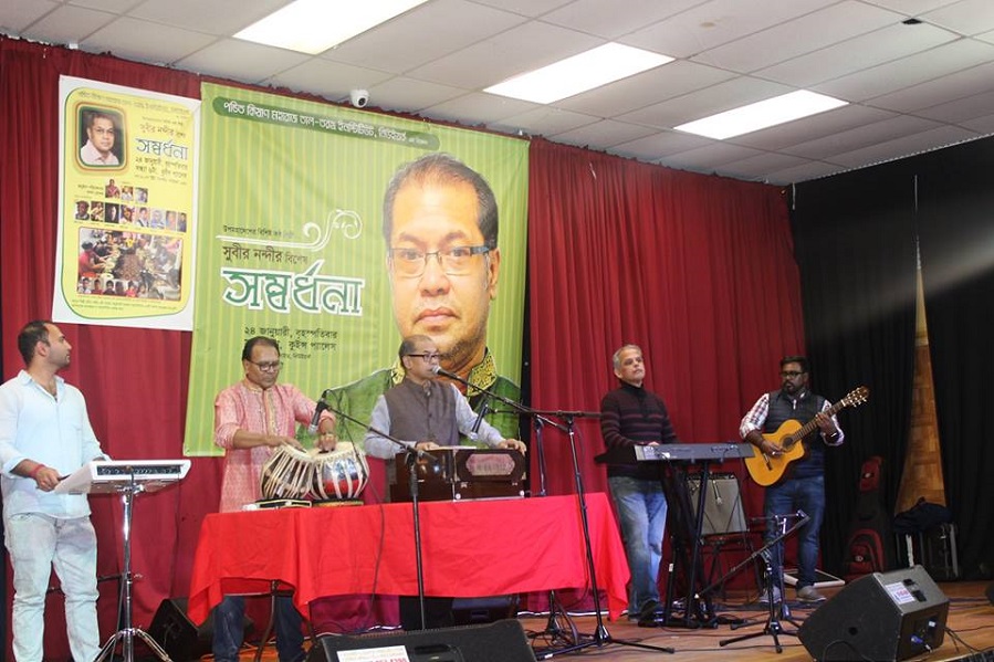 কিংবদন্তী শিল্পী সুবীর নন্দী’র গান শুরুর আগে একটি গান পরিবেশন করেন প্রবাসের অন্যতম জনপ্রিয় শিল্পী তানভীর শাহীন।