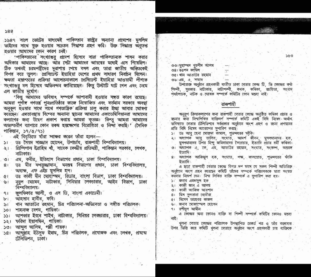 * আমার মূল বক্তব্যে নয় এক প্রশ্নের উত্তরে ইতিহাসের দায় থেকে আমি খান আতাউর রহমান সম্পর্কে উক্তিটি করেছিলাম। সবশেষে আবারো বলছি খান আতাউর রহমান একজন সৃষ্টিশীল মানুষ কিন্তু ১৯৭১ সালে তিনি দেশ ও মানুষের পাশে দাঁড়াতে ব্যর্থ হয়েছিলেন। ব্যক্তিগত ভাবে আমার তার বিরুদ্ধে কোন অভিযোগ নাই শিল্পী হিসাবে তাঁর প্রশংসা করি কিন্তু মুক্তিযুদ্ধকালে তার ভূমিকার সমালোচনা তো করতেই পারি।