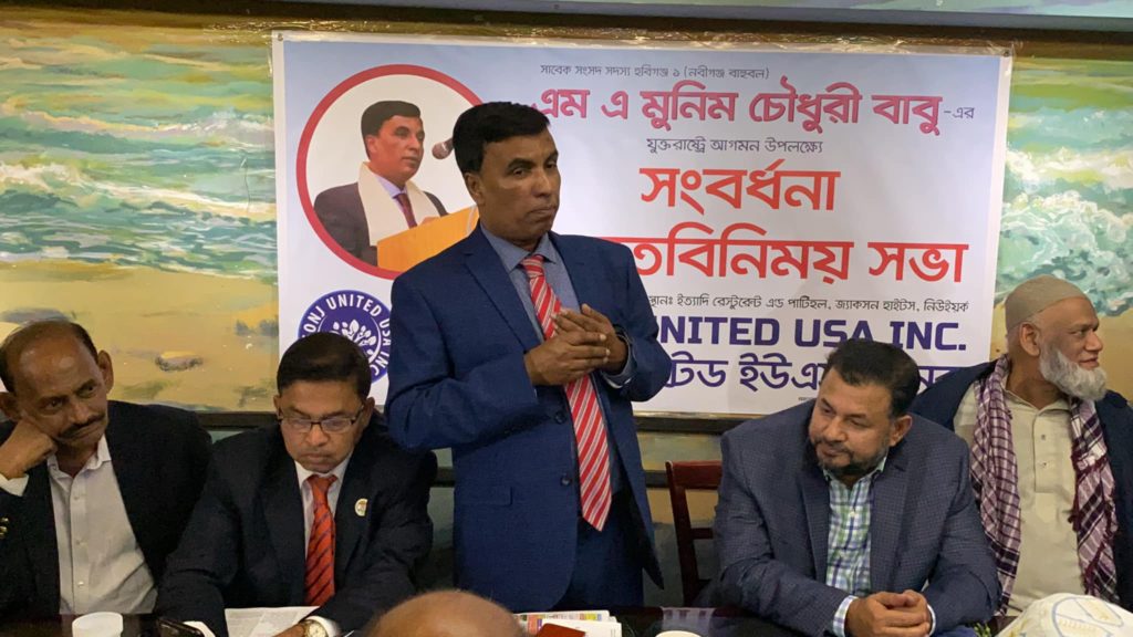 উল্লেখ্য, হবিগঞ্জ-১ (নবীগঞ্জ-বাহুবল) থেকে নির্বাচিত সাবেক সংসদ সদস্য জাতীয় পর্টির সাংগঠনিক সম্পাদক এম এ মুনিম চৌধুরী বাবুর যুক্তরাষ্ট্র আগমন উপলক্ষে নবীগঞ্জ ইউনাইটেড ইউএসএ ইনক এ সংবর্ধনা সভার আয়োজন করে।