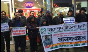 নিউইয়র্কে সড়ক দুর্ঘটনায় আহত মুশরাত জীবন-মৃত্যুর সন্ধিক্ষণে : চালকের শাস্তির দাবিতে নিসচা’র মানববন্ধন