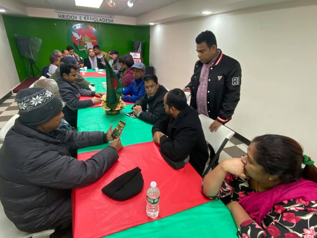 হৃদয়ে বাংলাদেশ মহান বিজয় দিবস উদযাপন উপলক্ষে কমিউনিটি নেতৃবৃন্দকে নিয়ে গত ২০ নভেম্বর বুধবার সন্ধ্যায় ব্রঙ্কসের এশিয়ান পার্টি হলে এক প্রস্তুতি সভা করেছে। হৃদয়ে বাংলাদেশ’র সভাপতি সাইদুর রহমান লিংকনের সভাপতিত্বে এবং সংগঠনের সাধারণ সম্পাদক পল্লব সরকারের পরিচালনায় অন্যদের মধ্যে প্রস্তুতি সভায় অংশ নেন মুক্তিযোদ্ধা তোফায়েল চৌধুরী, কমিউনিটি এক্টিভিস্ট মোহাম্মদ এন মজুমদার, আবদুস শহীদ, আবদুর রহিম বাদশা, আব্দুল বাছির খান, মুক্তিযোদ্ধা মুন্সী বশির উদ্দিন, মুক্তিযোদ্ধা গোলাম মোস্তফা, মুক্তিযোদ্ধা আবুল মনসুর, মুক্তিযোদ্ধা সৈয়দ আবদুল মতিন, মুক্তিযোদ্ধা মো. আবদুস সালাম,