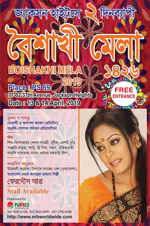 নিউইয়র্কে ১৩-১৪ এপ্রিল বৈশাখী মেলা : উদ্বোধক মুত্তালিব বিশ্বাস, গান গাইবেন বাংলাদেশের জনপ্রিয় শিল্পী ফেরদৌস আরা
