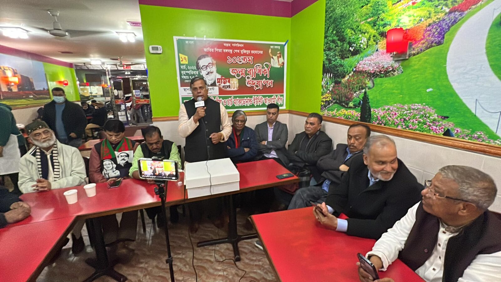 নিউইয়র্ক ব্রুকলীন আওয়ামী লীগের সভাপতি নুরুল ইসলাম নজরুলের সভাপতিত্বে এবং চার্চ-ম্যাকডোনাল্ড আওয়ামী লীগের সভাপতি ইসমত হক খোকনের সঞ্চালনায় অনুষ্ঠানে প্রধান অতিথি ছিলেন যুক্তরাষ্ট্র আওয়ামী লীগের উপদেষ্টা ডা. মাসুদুল হাসান, এমডি। প্রধান বক্তা ছিলেন মহানগর আওয়ামী লীগের সাধারণ সম্পাদক ইমদাদ চৌধুরী।
