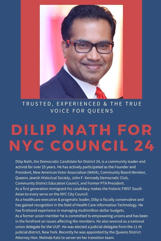 নিউইয়র্ক সিটি কাউন্সিল ডিস্ট্রিক-২৪ এর বিশেষ নির্বাচনে ডেমোক্রেট প্রার্থী ড. দিলীপ নাথের প্রাধান্য শিক্ষা-স্বাস্থ্য-পরিবহন খাত (ভিডিও)