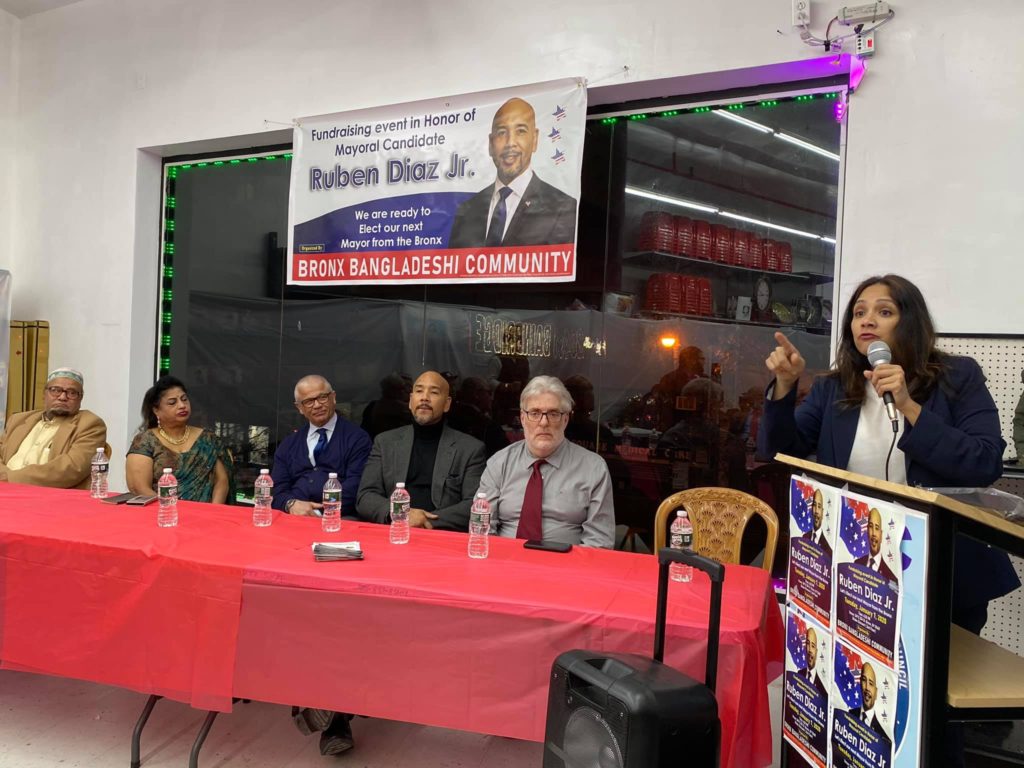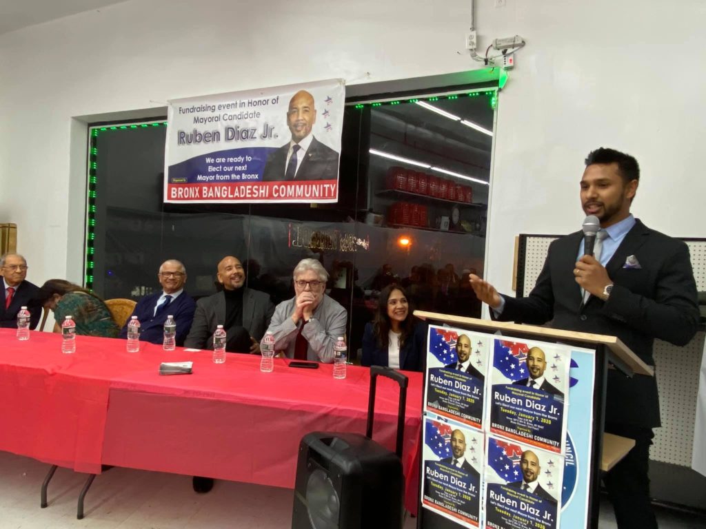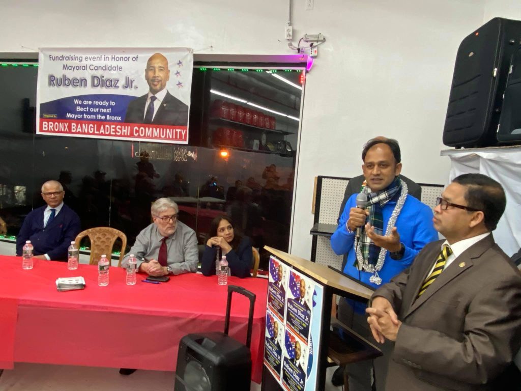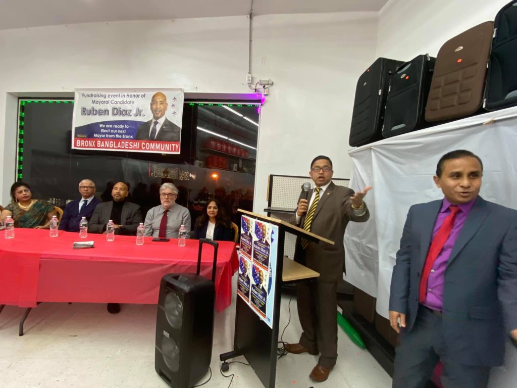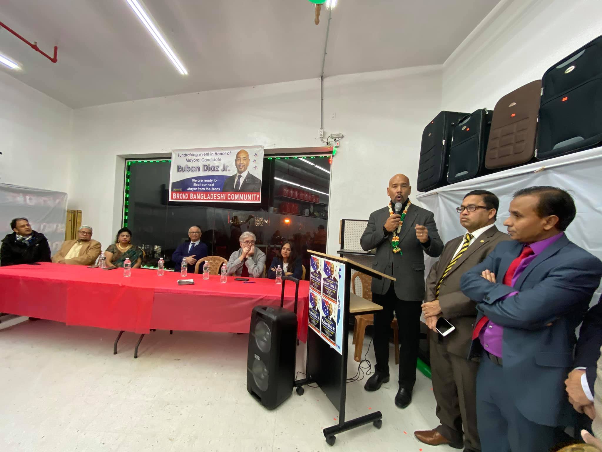 সভায় বাংলাদেশী আমেরিকানের পক্ষ থেকে আসন্ন সিটি মেয়র নিবার্চনে রুবিন ডিয়াজ জুনিয়রের জন্য তহবিল সংগ্রহ করা হয়।