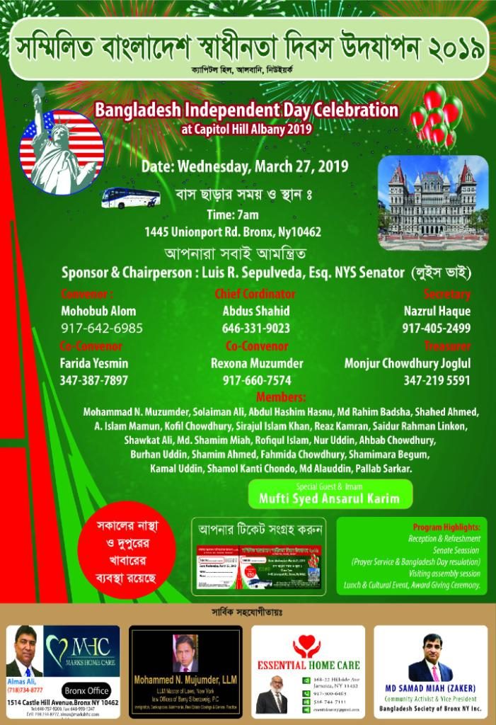 নিউইয়র্ক স্টেট সিনেট হাউসে ‘বাংলাদেশ ডে’ উদযাপন বুধবার