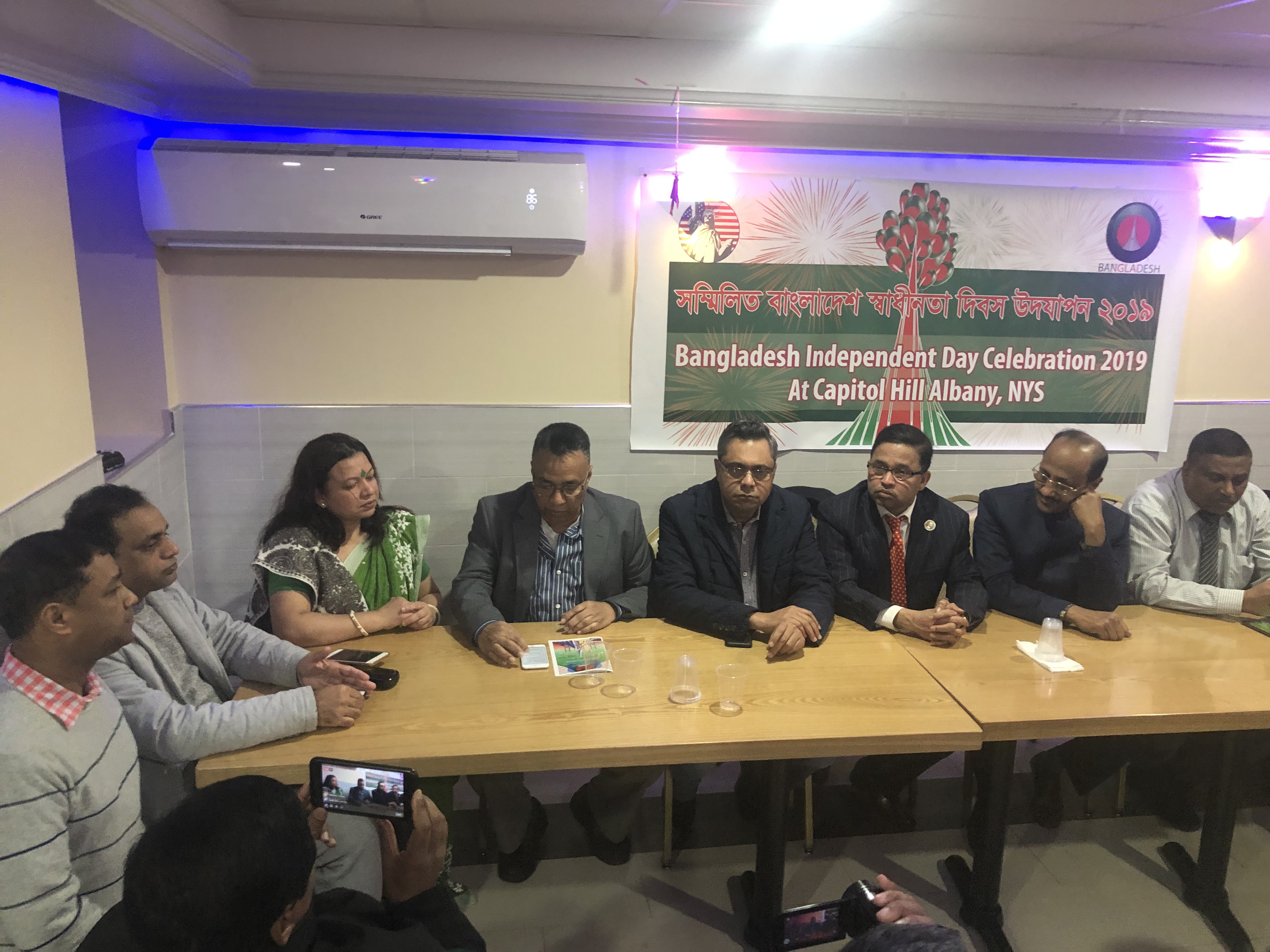 ইউএসএনিউজঅনলাইন.কম : নিউইয়র্ক স্টেট সিনেট হাউসে আগামী ২৭ মার্চ বুধবার ‘বাংলাদেশ ডে’ উদযাপন করা হবে। অস্টম বারের মতো নিউইয়র্ক স্টেটের রাজধানী আলবেনীতে বাংলাদেশের মহান স্বাধীনতা দিবস উদযাপিত হবে “বাংলাদেশ ডে” হিসেবে। বাংলাদেশের ৪৮ তম স্বাধীনতা দিবসের এদিনে আলবেনীর ক্যাপিটাল হিলে আবারো উড়বে বাংলাদেশের পতাকা। নিউইয়র্কে ব্রঙ্কসের একটি রেস্টুরেন্টে গত ২০ মার্চ বুধবার আয়োজিত এক সংবাদ সম্মেলনে বাংলাদেশ ডে উদযাপনের চূড়ান্ত প্রস্তুতির কথা জানিয়েছে এ লক্ষে গঠিত আহ্বায়ক কমিটি। সংবাদ সম্মেলনে অন্যদের মধ্যে বক্তব্য রাখেন, কনভেনার মাহবুব আলম, প্রধান সমন্বয়কারী আবদুস শহীদ, সাবেক চেয়ারম্যান মোহাম্মদ এন মজুমদার, বর্তমান কো-কনভেনার ফরিদা ইয়াসমিন, মেম্বার সেক্রেটারী নজরুল হক, সদস্য শাহেদ আহমদ, এ ইসলাম মামুন, কফিল চৌধুরী, পল্লব সরকার, আলাউদ্দিন প্রমুখ।