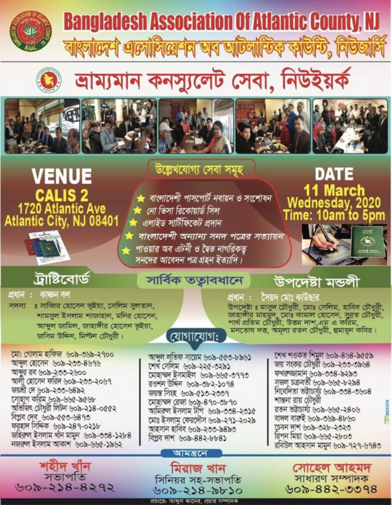 নিউজার্সীর আটলান্টিক সিটিতে ভ্রাম্যমান কনস্যুলেট সেবা ১১ মার্চ