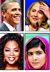 পুরুষদের মধ্যে জনপ্রিয় ওবামা হিলারি, অপরাহ’র পরই মালালা