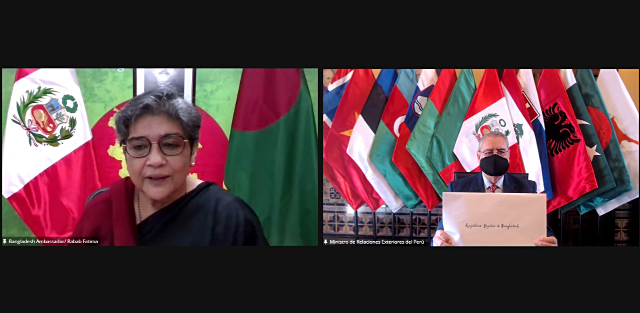 পেরুতে সমবর্তী রাষ্ট্রদূত হিসেবে জাতিসংঘ নিযুক্ত বাংলাদেশের স্থায়ী প্রতিনিধি রাষ্ট্রদূত রাবাব ফাতিমার পরিচয়পত্র পেশ