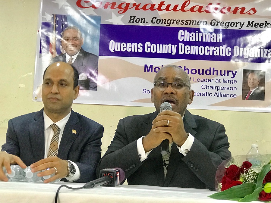 বলেছেন, ‘সৎ ও নিষ্টার সাথে দায়িত্ব পালনের মধ্য দিয়ে বাংলাদেশী-আমেরিকানদের গুরুত্ব অনেক বেড়েছে মার্কিন রাজনীতিতে। ইতিমধ্যেই যারা ডেমক্র্যাটিক পার্টির সাংগঠনিক ফোরামে সক্রিয় রয়েছেন, তাদের এখন সময় হচ্ছে স্থানীয় ও জাতীয় পর্যায়ের রাজনীতিতে অবতীর্ণ হবার’। ১৪ মার্চ বৃহস্পতিবার সন্ধ্যায় এই কংগ্রেসম্যানকে ফুলেল শুভেচ্ছা জানাতে এক সভার আয়োজন করেন ডেমক্র্যাটিক পার্টির ডিস্ট্রিক্ট লিডার এ্যাট লার্জ এটর্নী মঈন চৌধুরী। দুদিন আগে অনুষ্ঠিত নির্বাচনে গ্রেগরী মিক্স কুইন্স কাউন্টি ডেমক্র্যাটিক অর্গানাইজেশনের চেয়ারম্যান নির্বাচিত হওয়ায় এ শুভেচ্ছা সমাবেশে এশিয়ার বিভিন্ন দেশের ডেমক্র্যাটরা জড়ো হয়েছিলেন জ্যাকসন হাইটসে পালকি পার্টি সেন্টারে। উল্লেখ্য, এই অর্গানাইজেশনের চেয়ারম্যান ছিলেন কংগ্রেসম্যান যোসেফ ক্রাউলি। গত মধ্যবর্তী নির্বাচনে ক্রাউলি জয়ী হতে না পারায় পদটি শুন্য হয়েছিল।