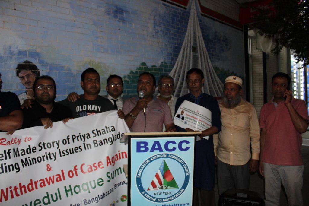 প্রেসিডেন্ট ট্রাম্পের কাছে প্রিয়া সাহার অভিযোগ এবং ব্যারিস্টার সুমনের বিরুদ্ধে মামলা’র প্রতিবাদে নিউইয়র্কে বাংলাদেশী আমেরিকান কমিউনিটি কাউন্সিল’র মানববন্ধন (ভিডিও)