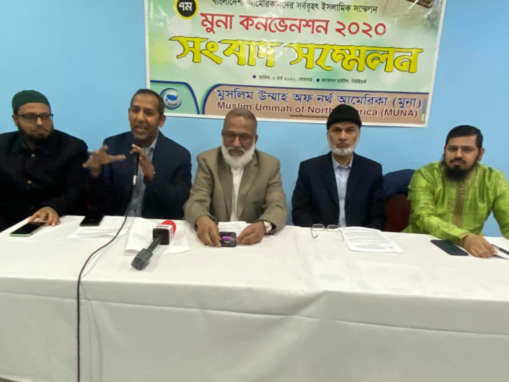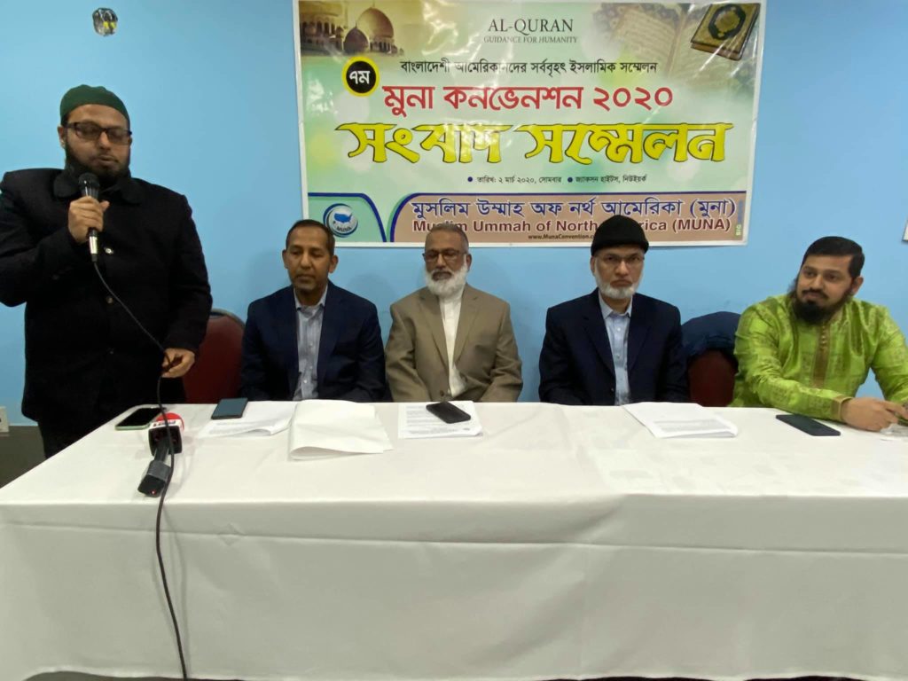 মুনা কনভেনশন ২০২০ উপলক্ষ্যে নিউইয়র্কে জ্যাকসন হাইটসের পালকি পার্টি সেন্টারে গত ২রা মার্চ সোমবার সন্ধ্যায় মুনা আয়োজিত সংবাদ সম্মেলনে এ তথ্য জানান হয়।
